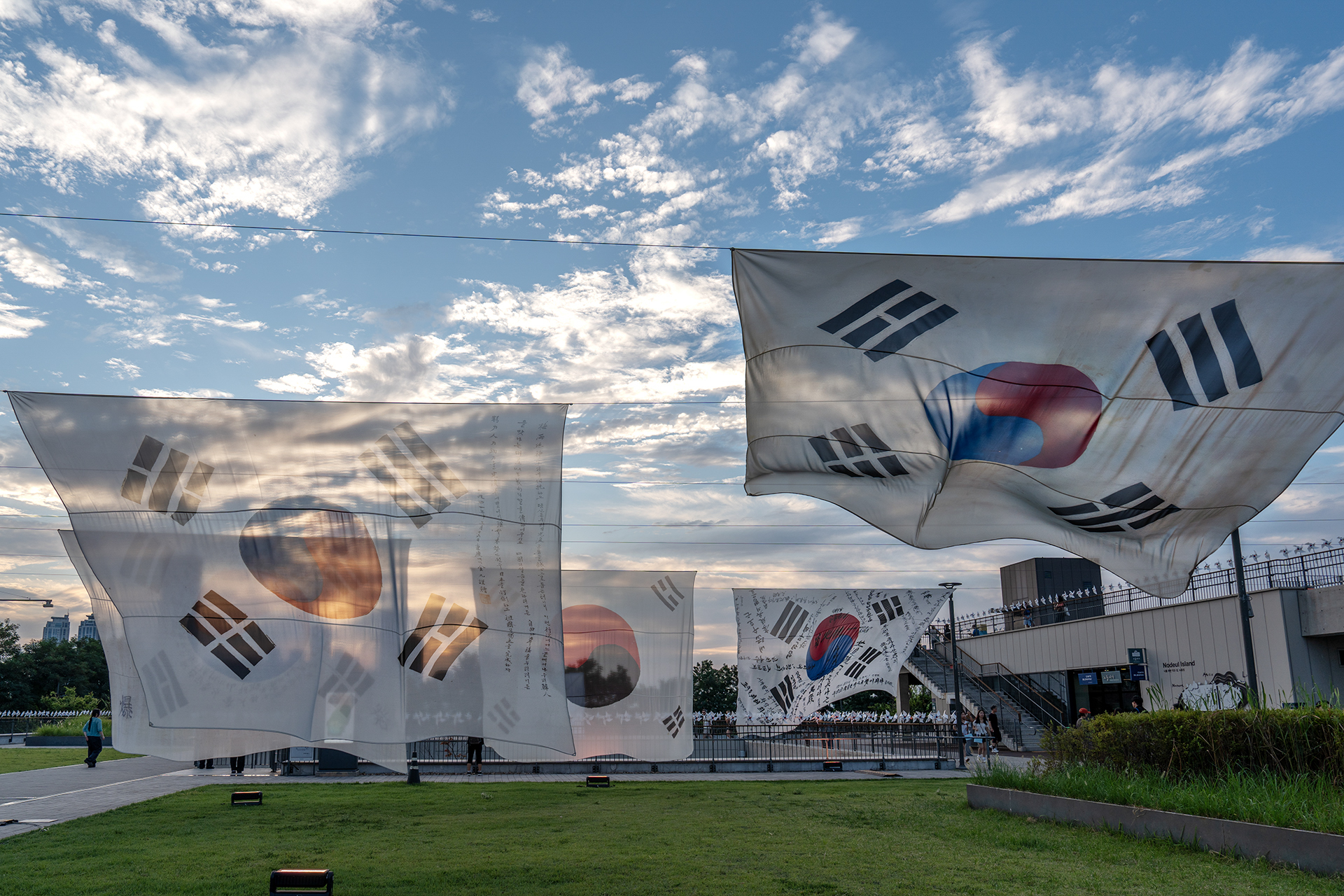 광복 80주년을 기넘하는 태극기가 1000개의 바람개비와 함께 노들섬을 뒤덮고 있습니다.