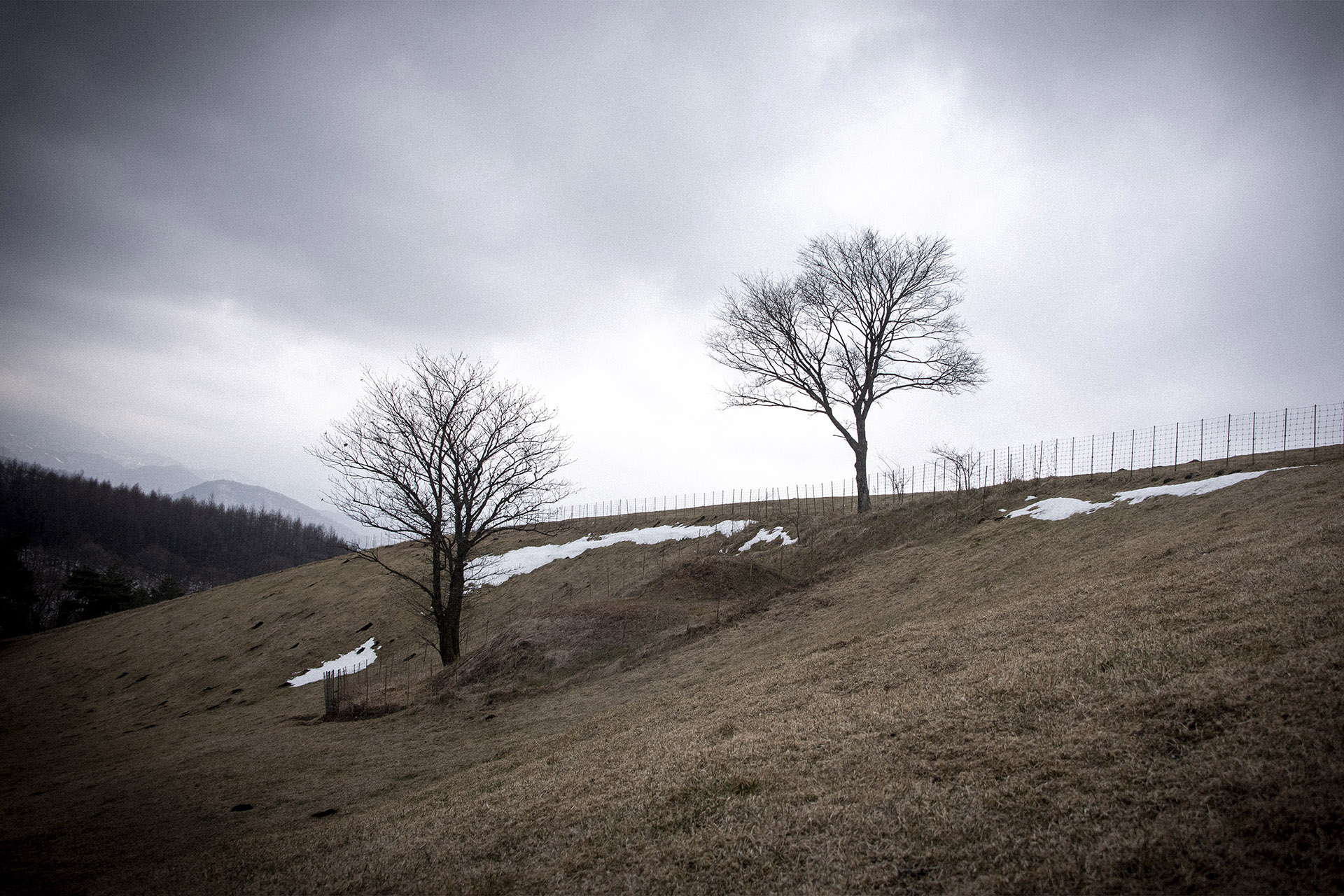 대관령 목장의 겨울 잔설이 조금 남아있는 (풍경)