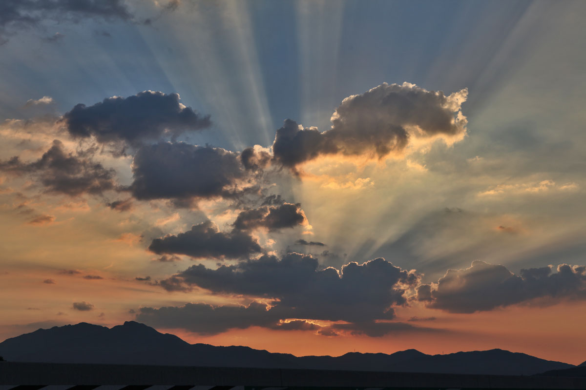 지리산 자락의 저녘 노을속의 빛오름(?)이