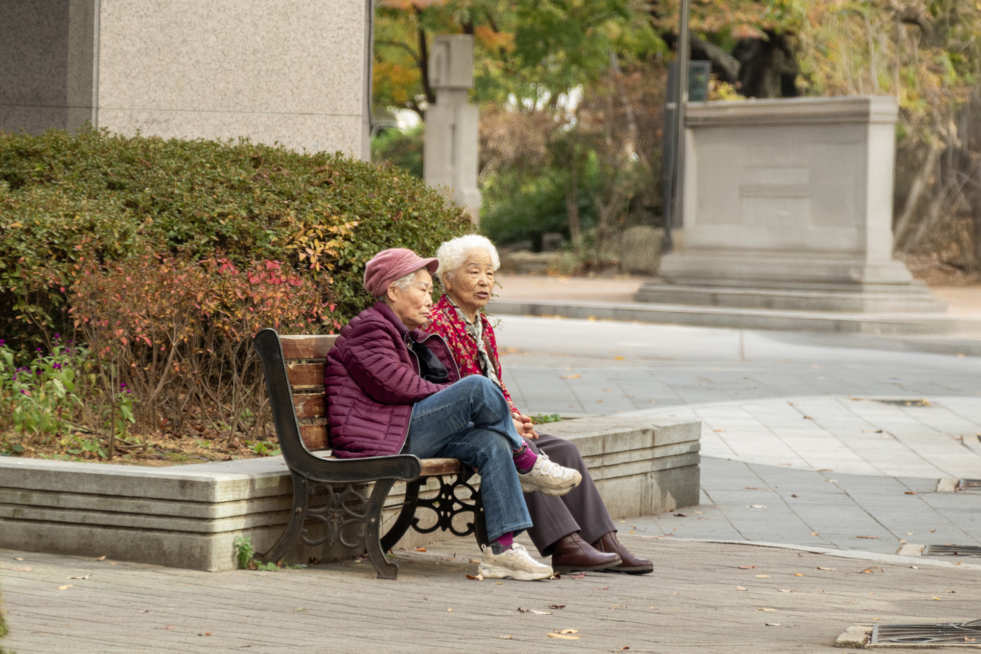 아파트 단지내에서 어른신 두분이 정답게 담소를 나누고 있기에