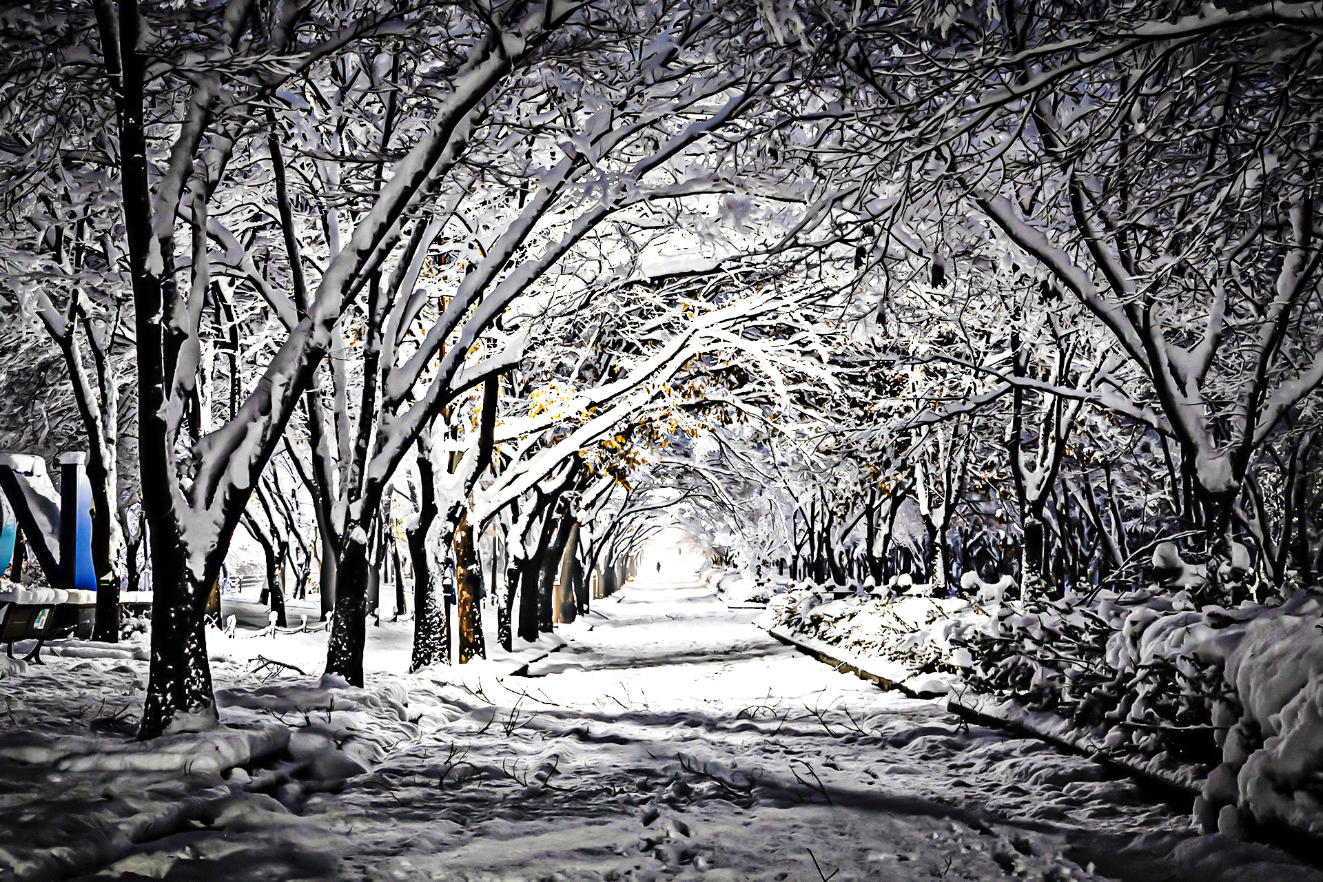 아무도 없는 눈 내리는 인천대공원에서의 추억