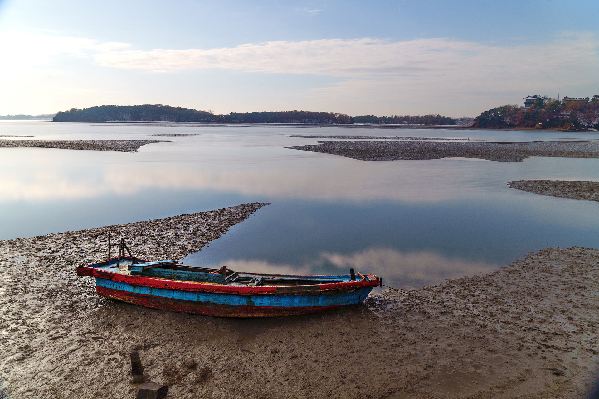 파란 하늘과 구름이 갯골 가득 담겼습니다.