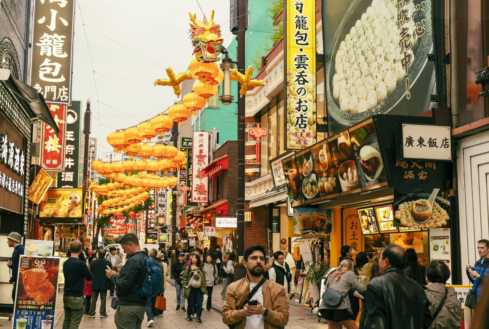 요코하마의 차이나타운 거리에서