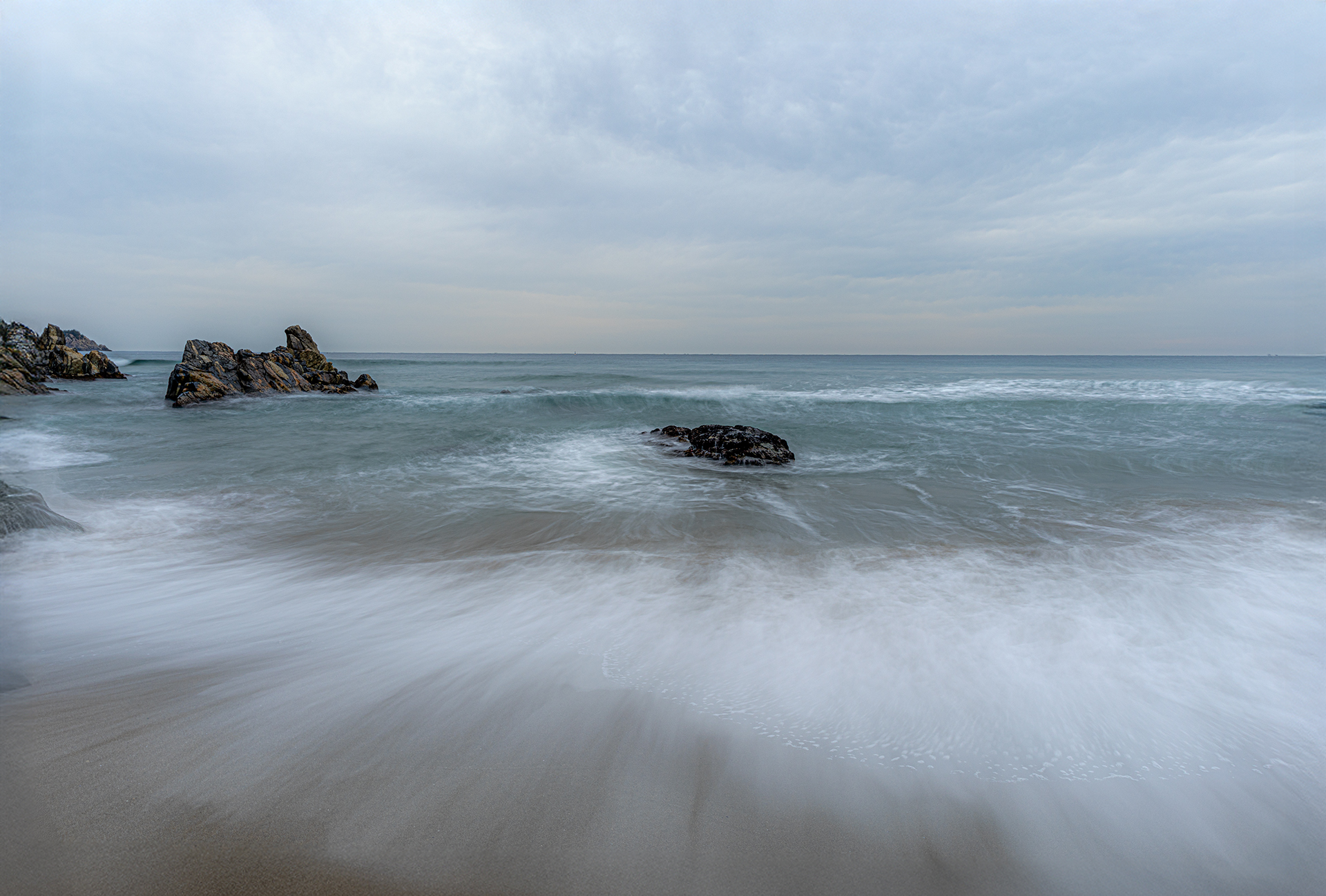 파도속에 바위가 거북이현상이네요.