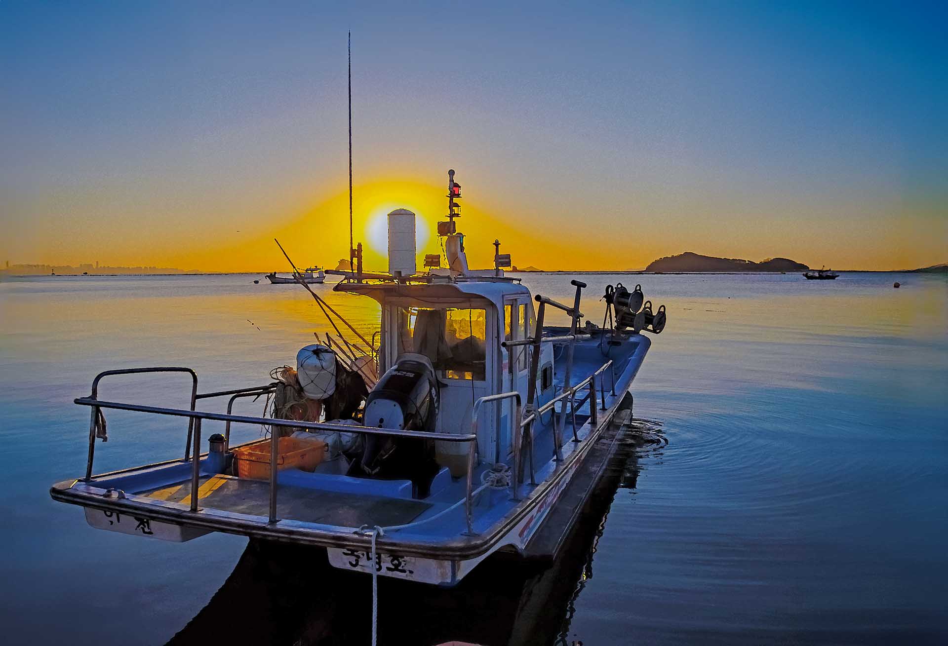 독크로 내려가서 어선과 함께 뜨는해를 표현해 봤습니다