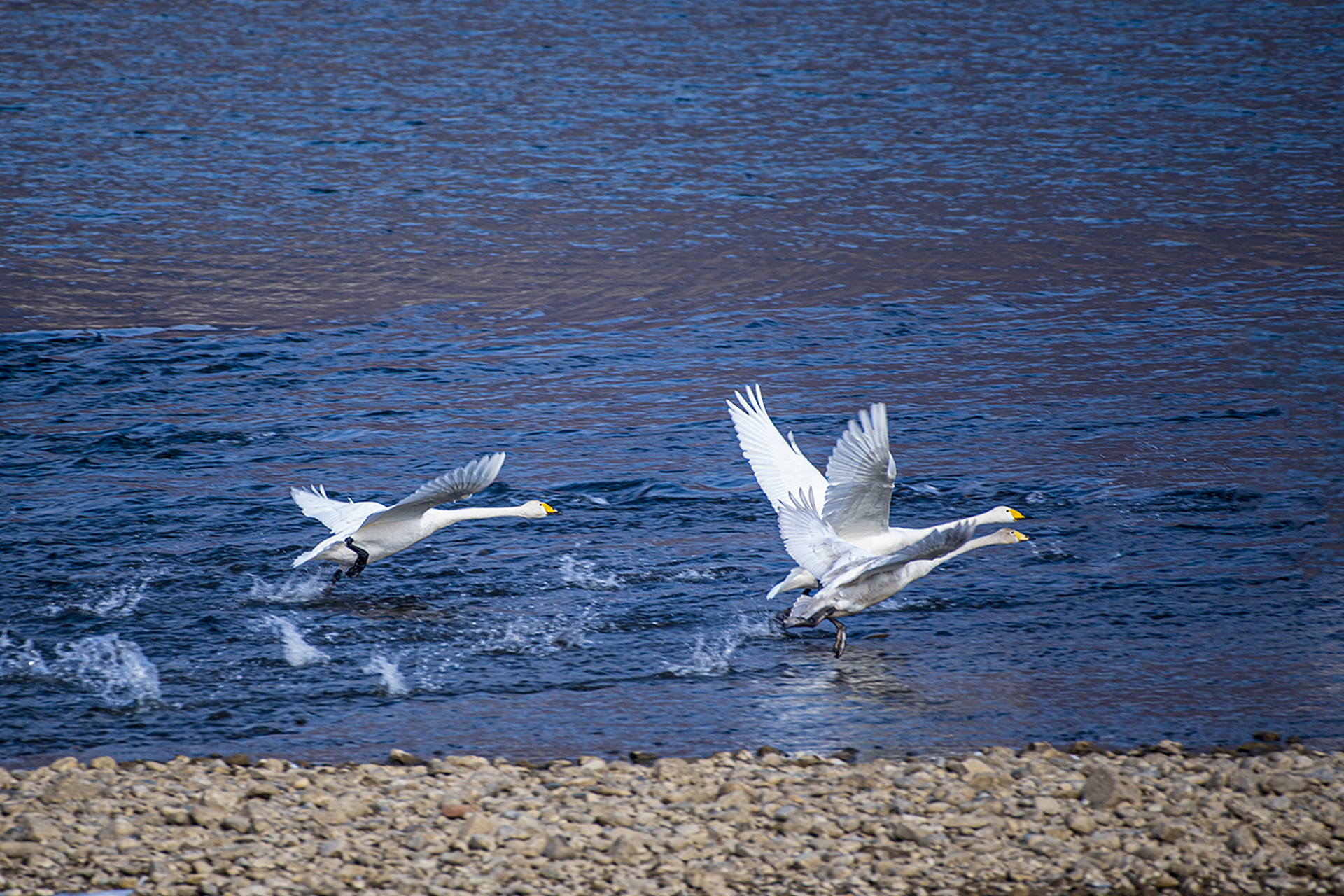 힘차게 솟아 오르는 고니 의 비행