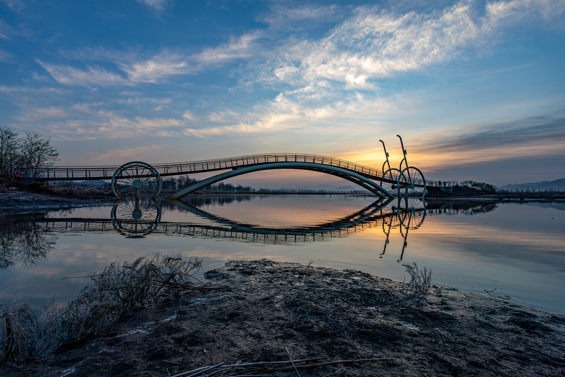 미생교의 반영이 사람의 눈 모습 같습니다