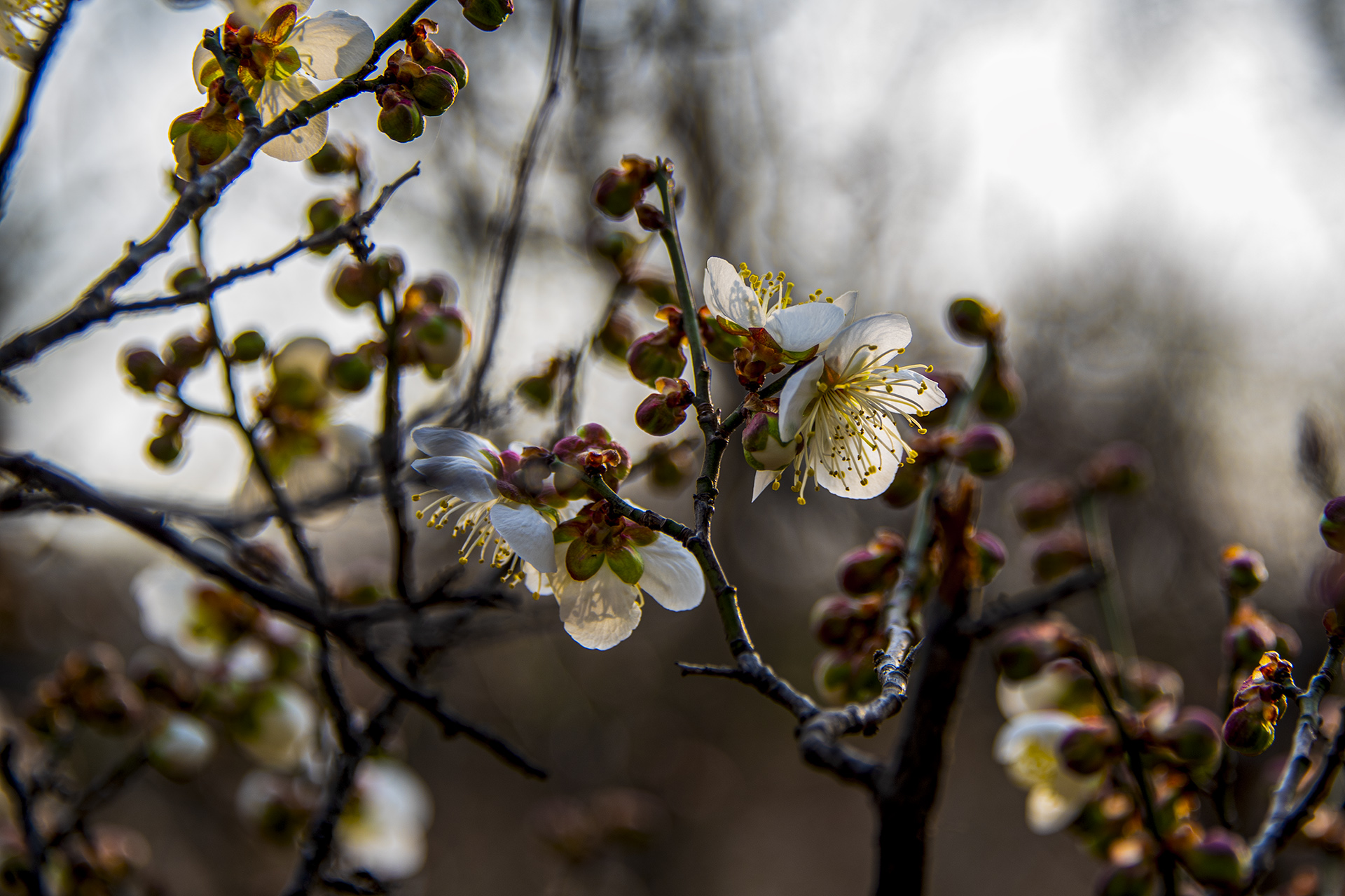 매화꽃 인천에도 할짝 피었다. 카메라 초점을 꽃에 맞춰본다~