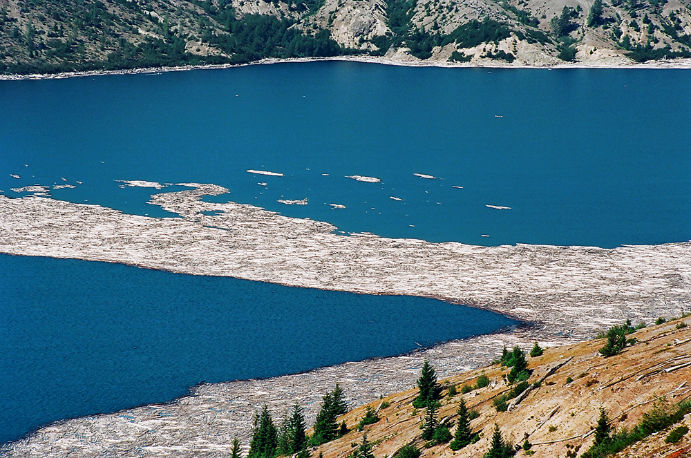 약30십년전 오레곤에있는 마운틴 핼렌 화산폭팔로 주변 나무들이 연못으로 밀려드러와 오늘모습임니다(8-5-2012촬영)