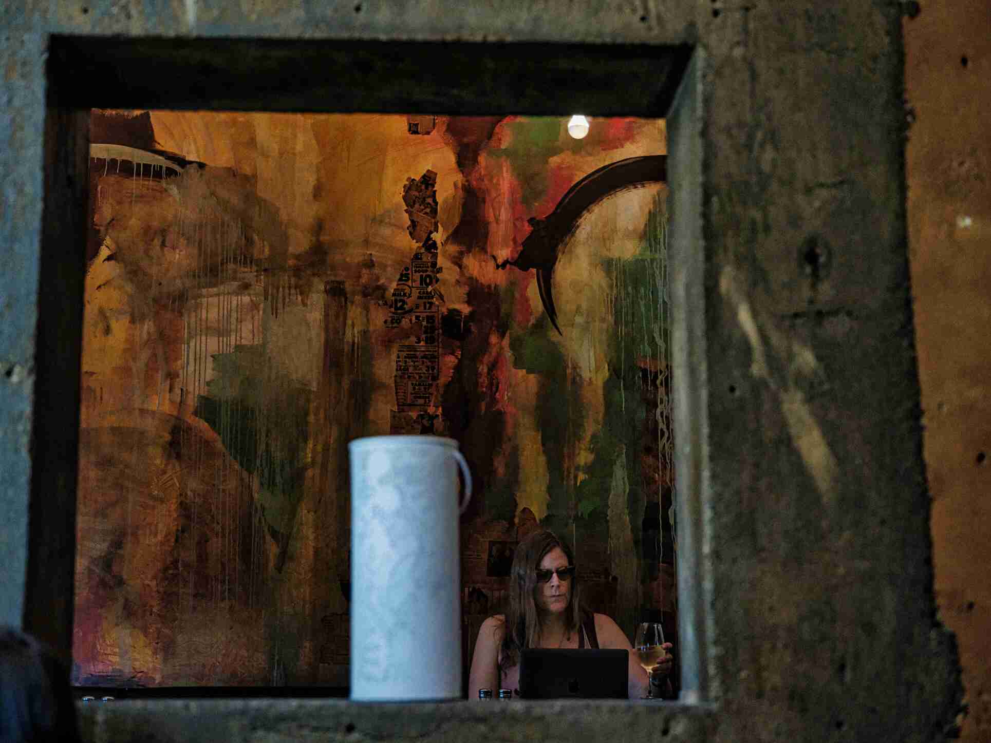늦은 오후 한가한 식당으로 들어오는 빛으로 바랜 색이 좋아 우선 구석진 자리를 ?아 배는 가시지 않아 주문?을 기다리며
