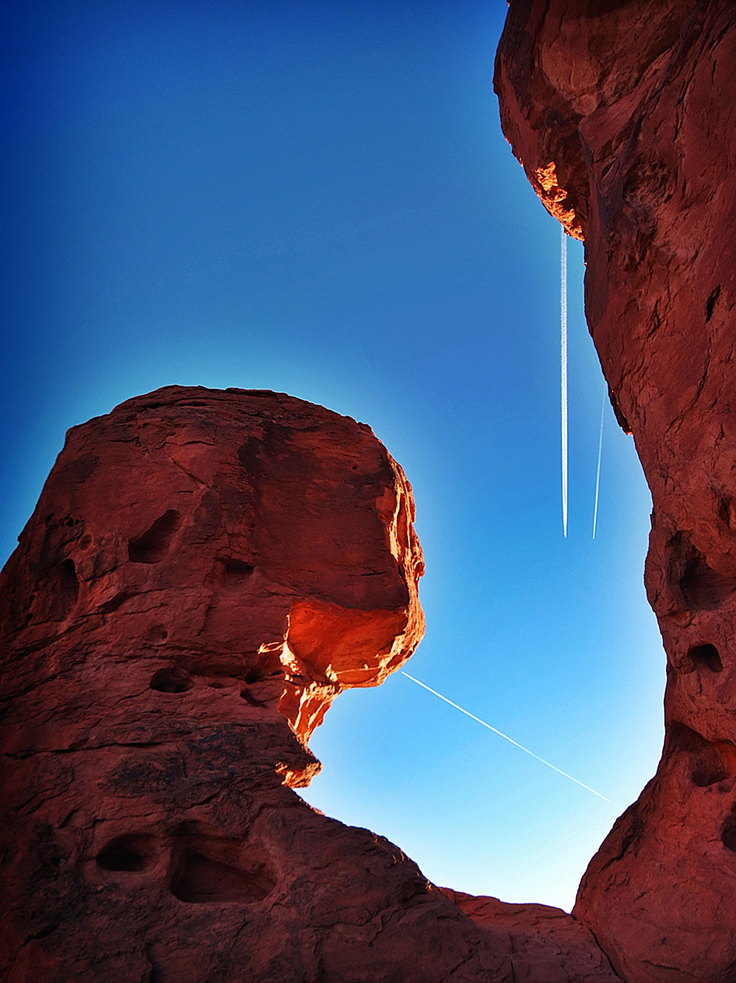 암석안으로 들어오는 젯트기의 궤적이 아름답습니다 옆에 공군 비행장이 있는것 같아요