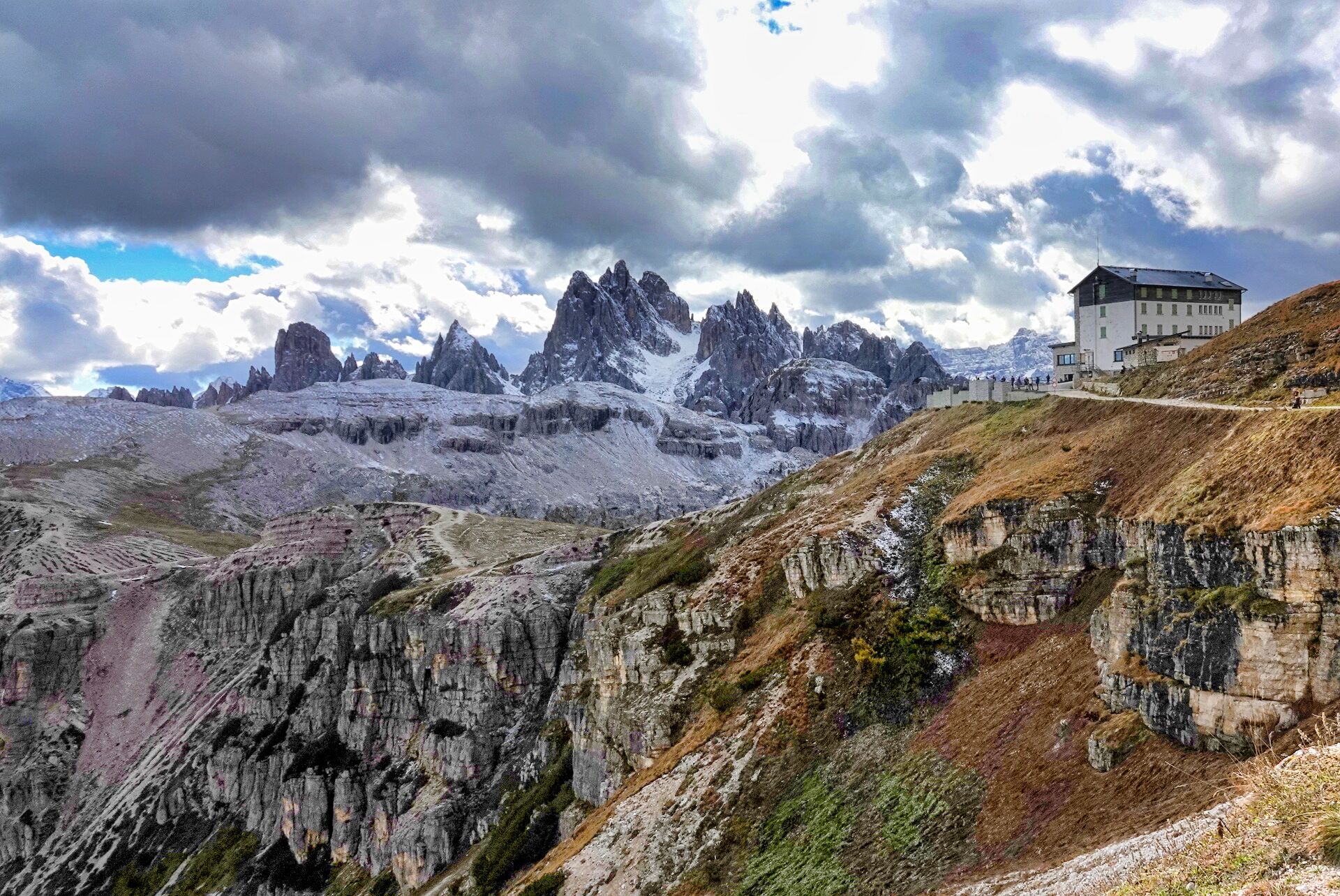 돌로미티 트레치메를 가까이 보러가는길에 지나는 산장 3곳을 지나첫는데 season off 라 방문자는 많은데 문을 닫았다. 이탈리아 알프스의 꽃으로 불르우는 아름다운곳....