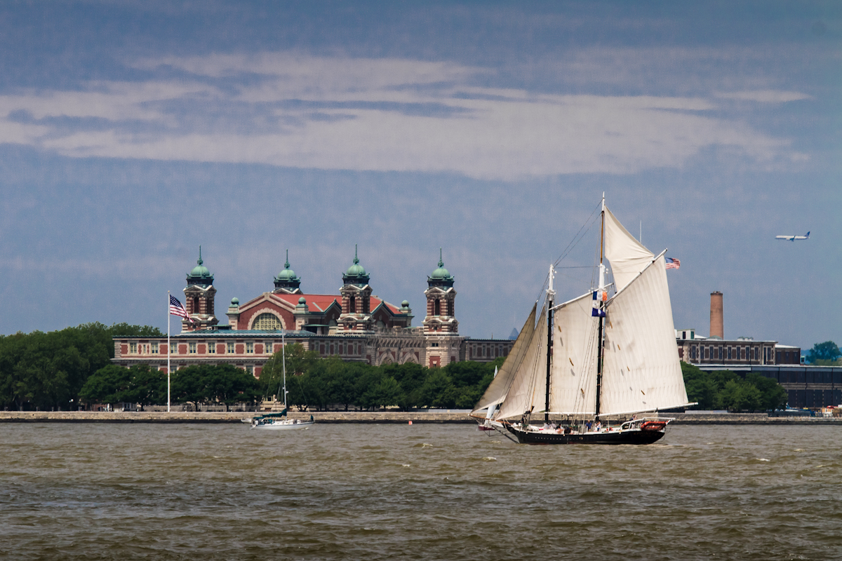 그 옛날 기회의 땅을 찾아온 이민자들이 입국심사를 받던 앨리스섬의 엣 건물이 보인다. . .