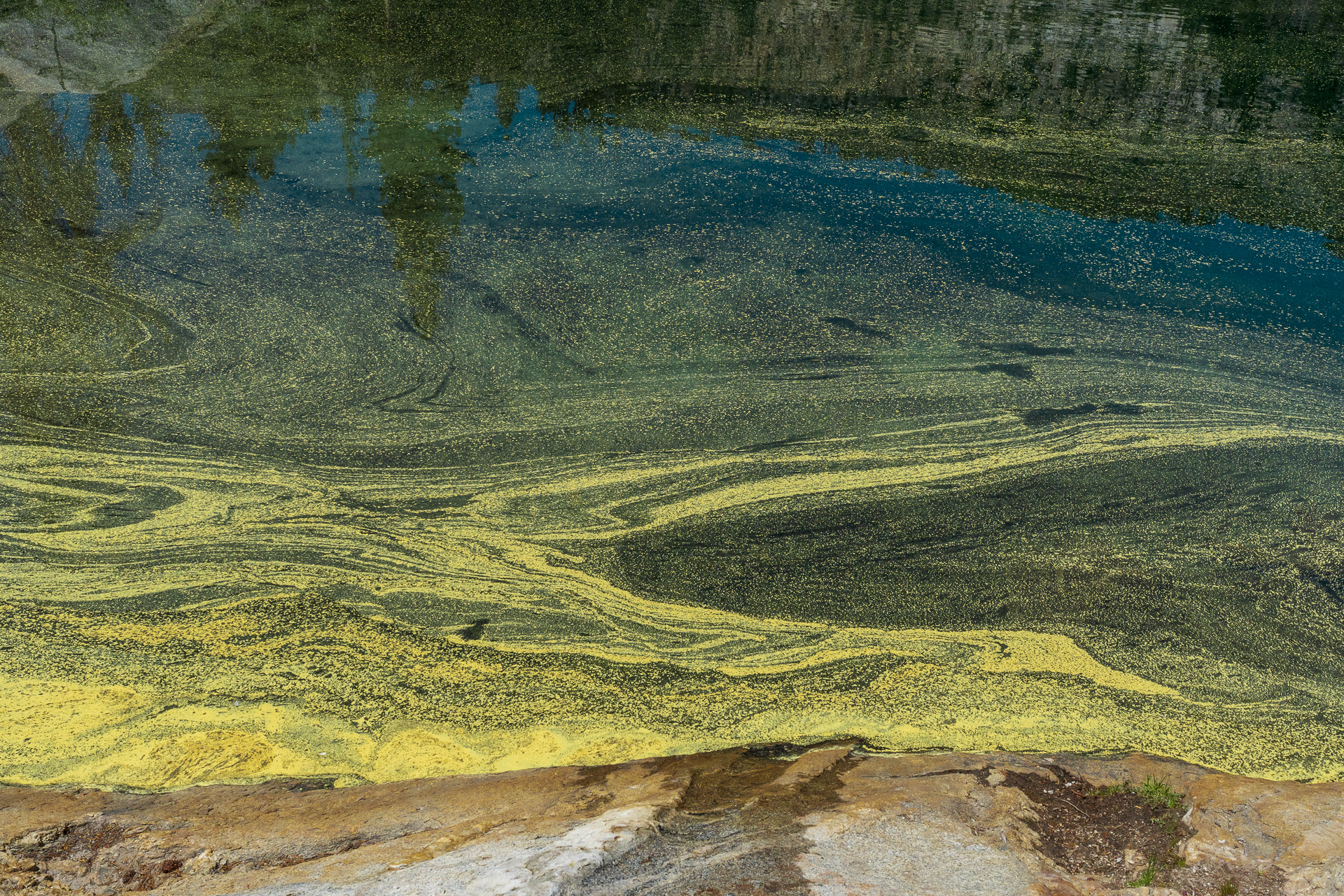 호수위에 송화가루가