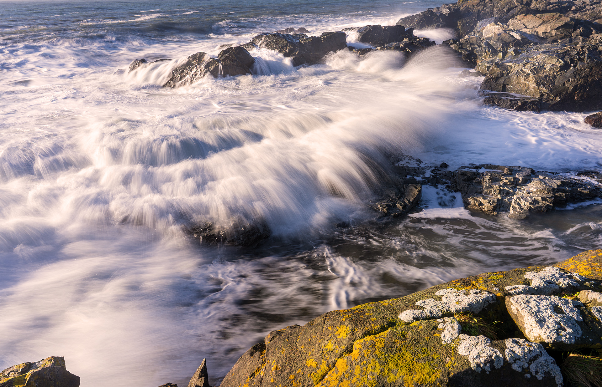 부셔지는 파도와 노오란 이끼들..