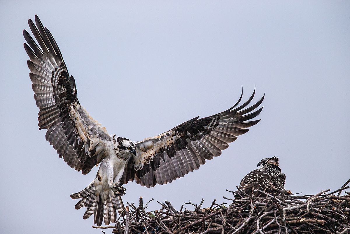 워싱턴의 물수리 어미가 날기 시범을 유조에게 보입니다