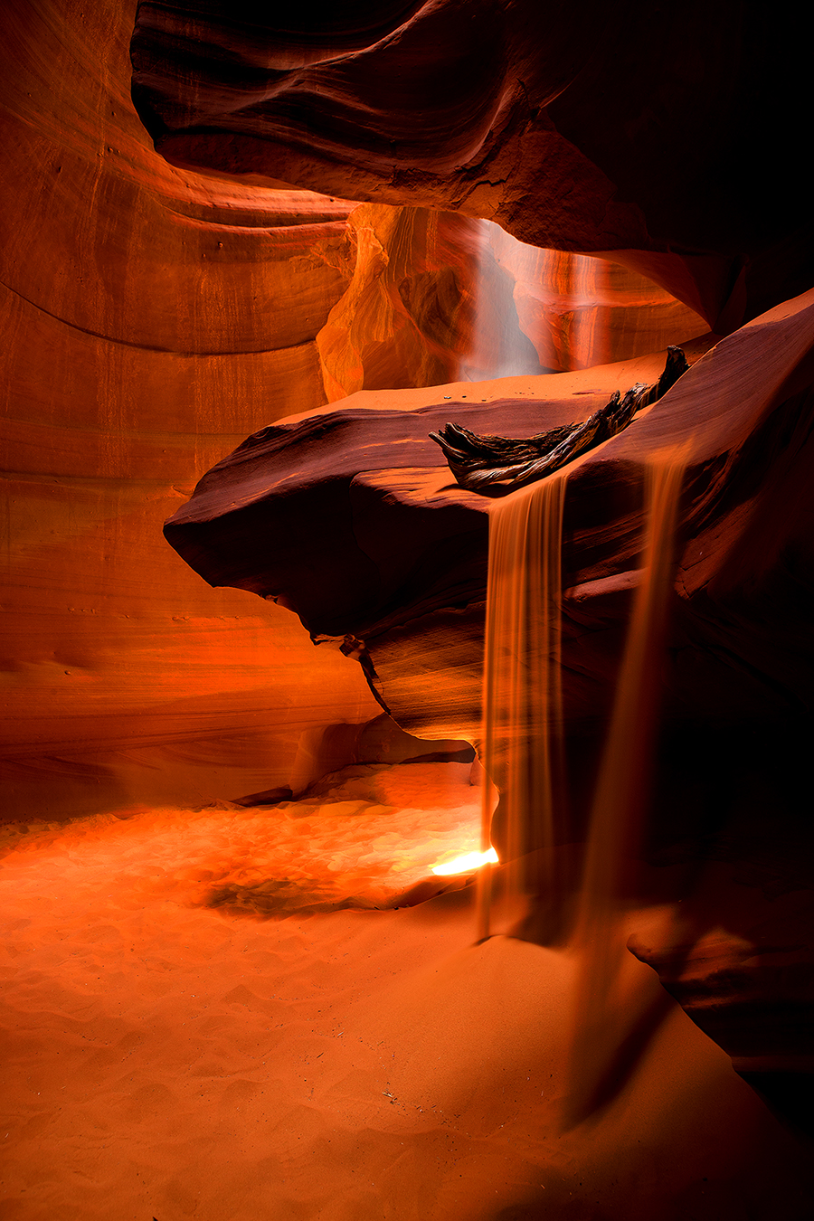 Antelope Canyon에서 모래 폭포와 빛의 폭포를 보았습니다