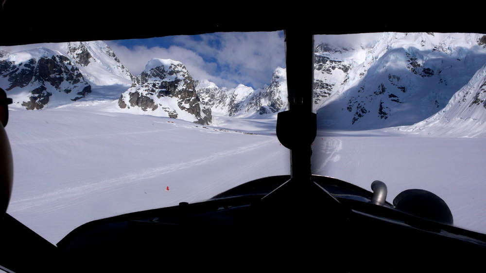 데날리 설원위로 착륙 중입니다.