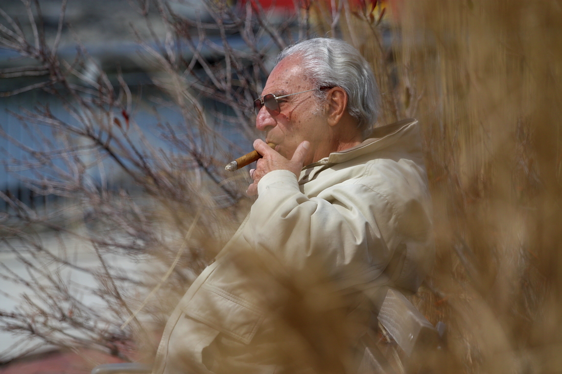 시가를 즐기는 모습,