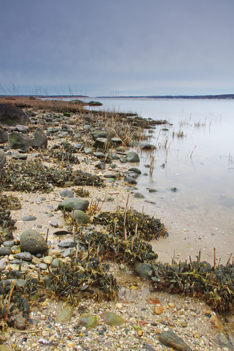 홍합과 바다갈대가 이추운 겨울에도