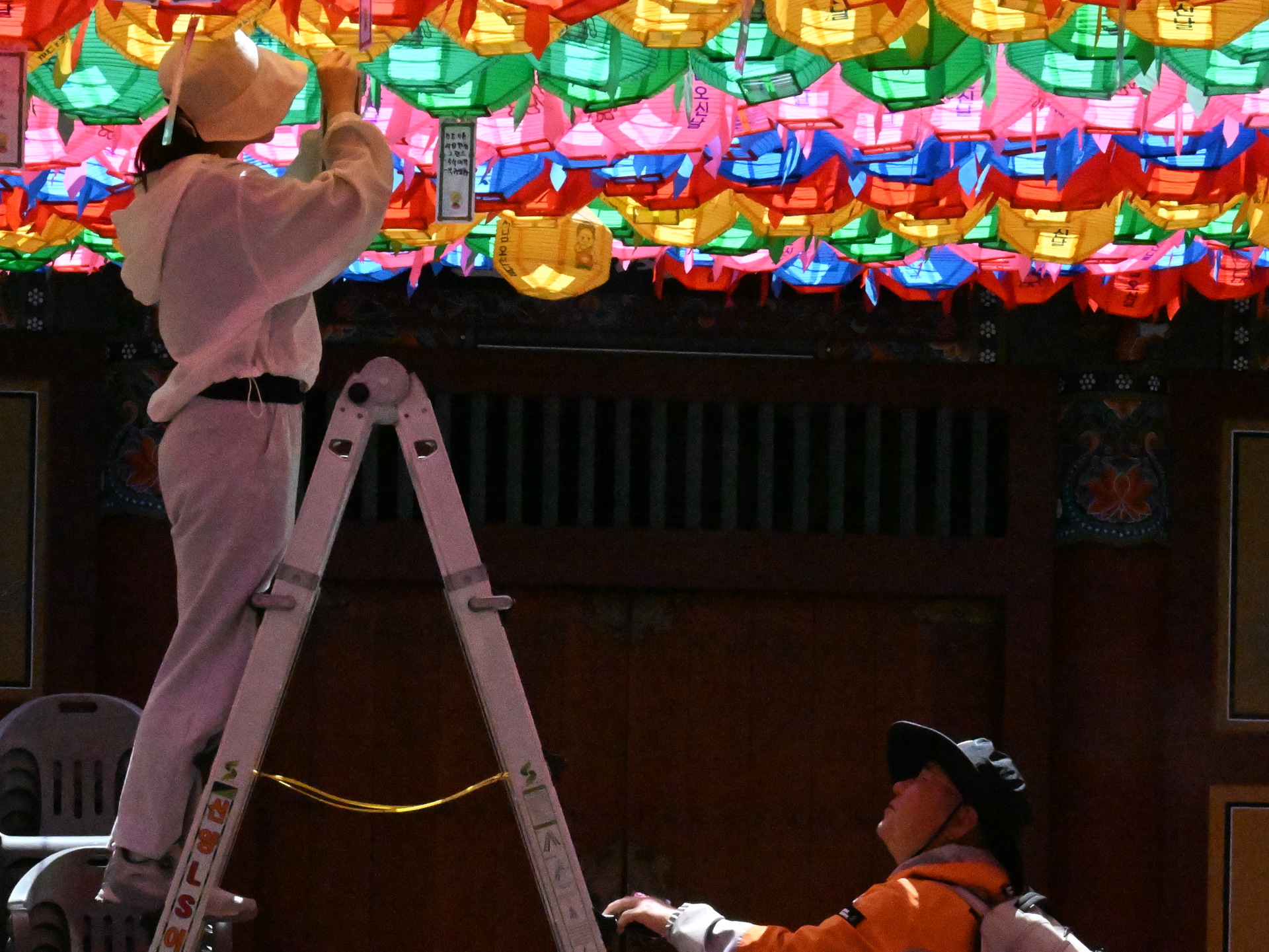 연등을 정성??달고있는 모습이 남편이 바라보고 있는 정겨운 모습입니다