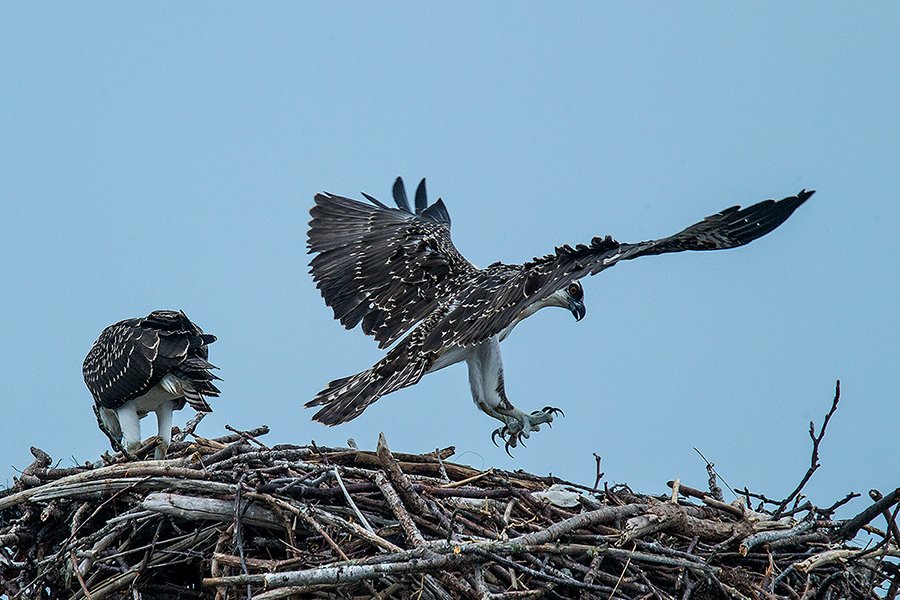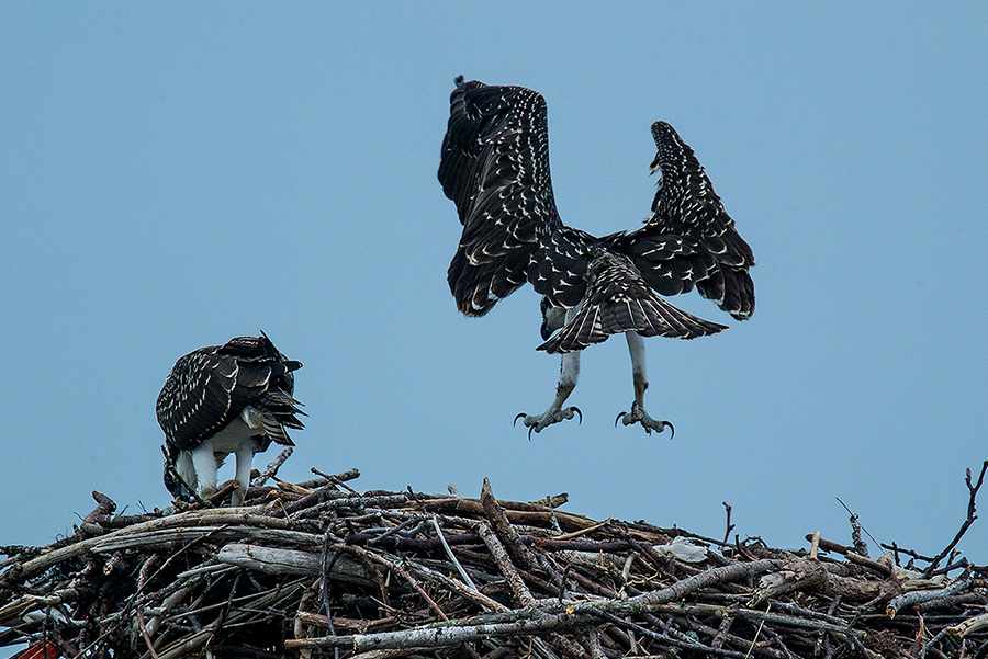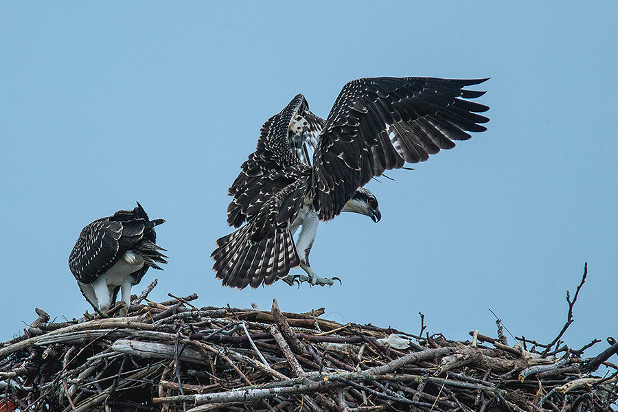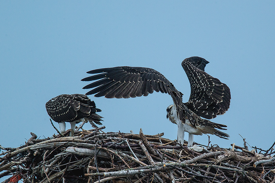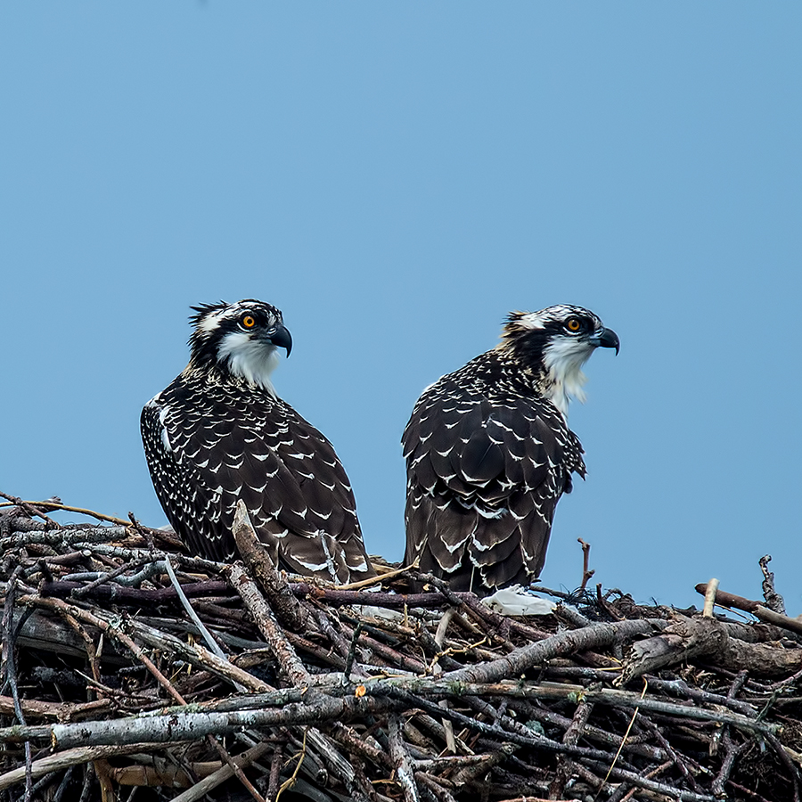 물수리 유조 두 마리가 둥지에서