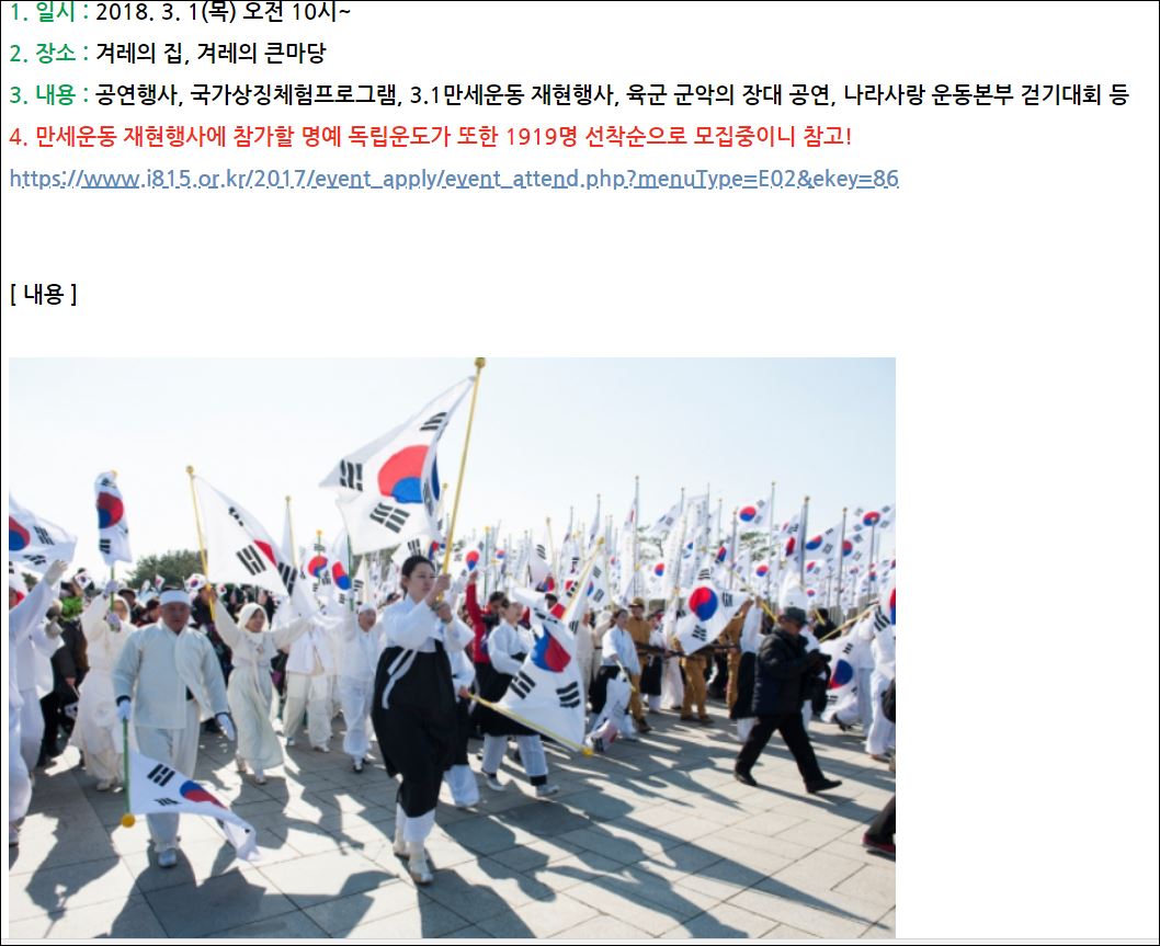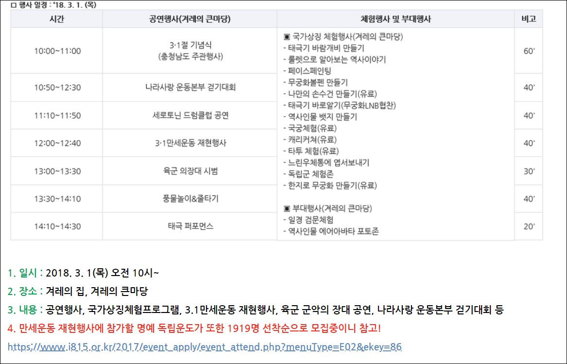 3.1절 독립기념관 가실분 모집합니다