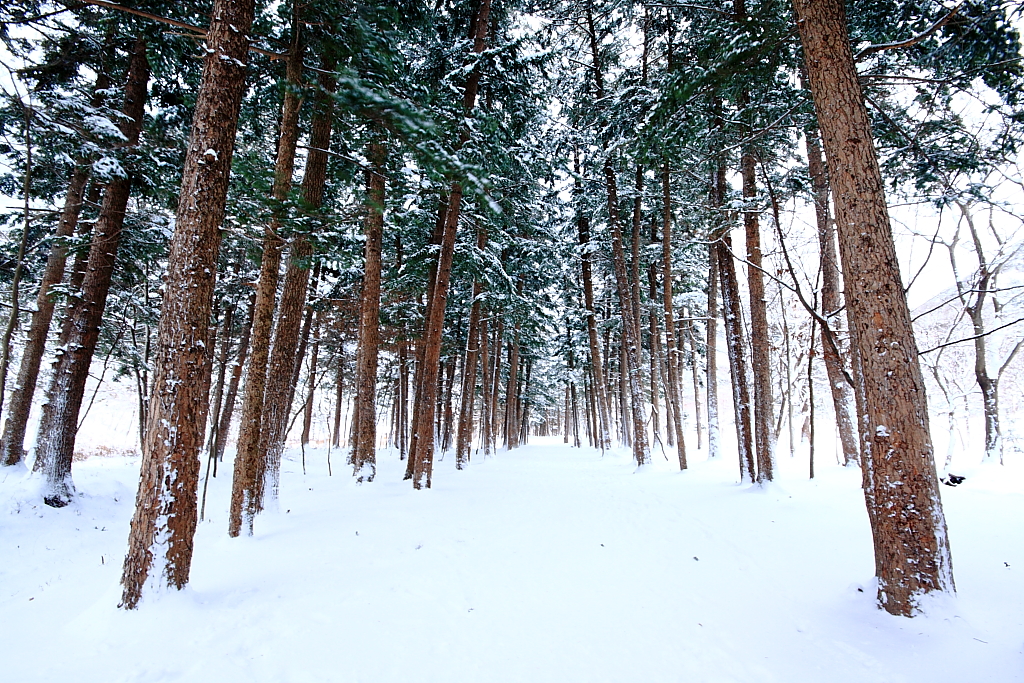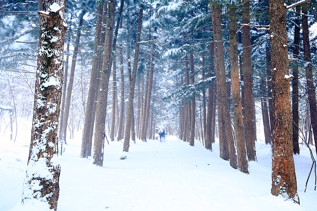 눈보라가 몰아치는 늦은 시각 내소사
