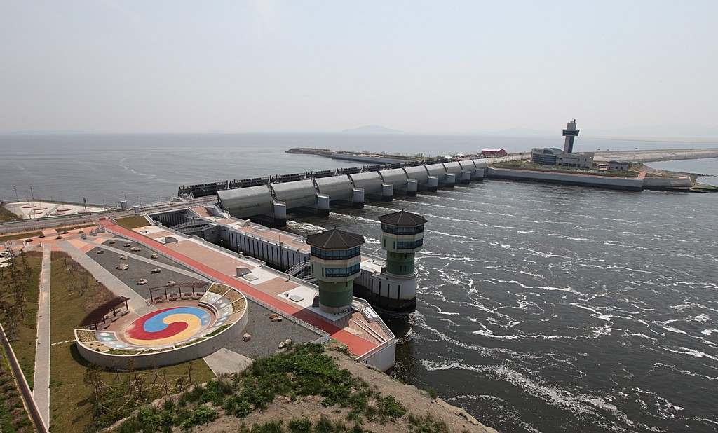 새만금 신시도리 휴게소에서 바다와 통수중인 장면