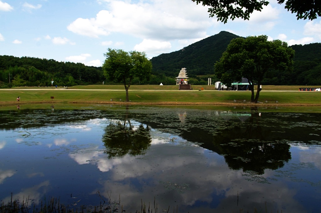미륵사지에서 아름다운 반영이 보이기에