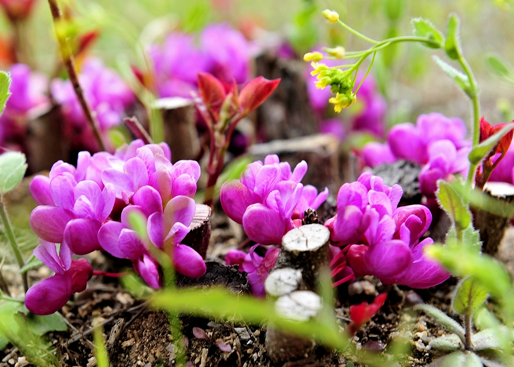 박태기꽃 같은데 잘라낸 부위에서 꽃을 피웠다.