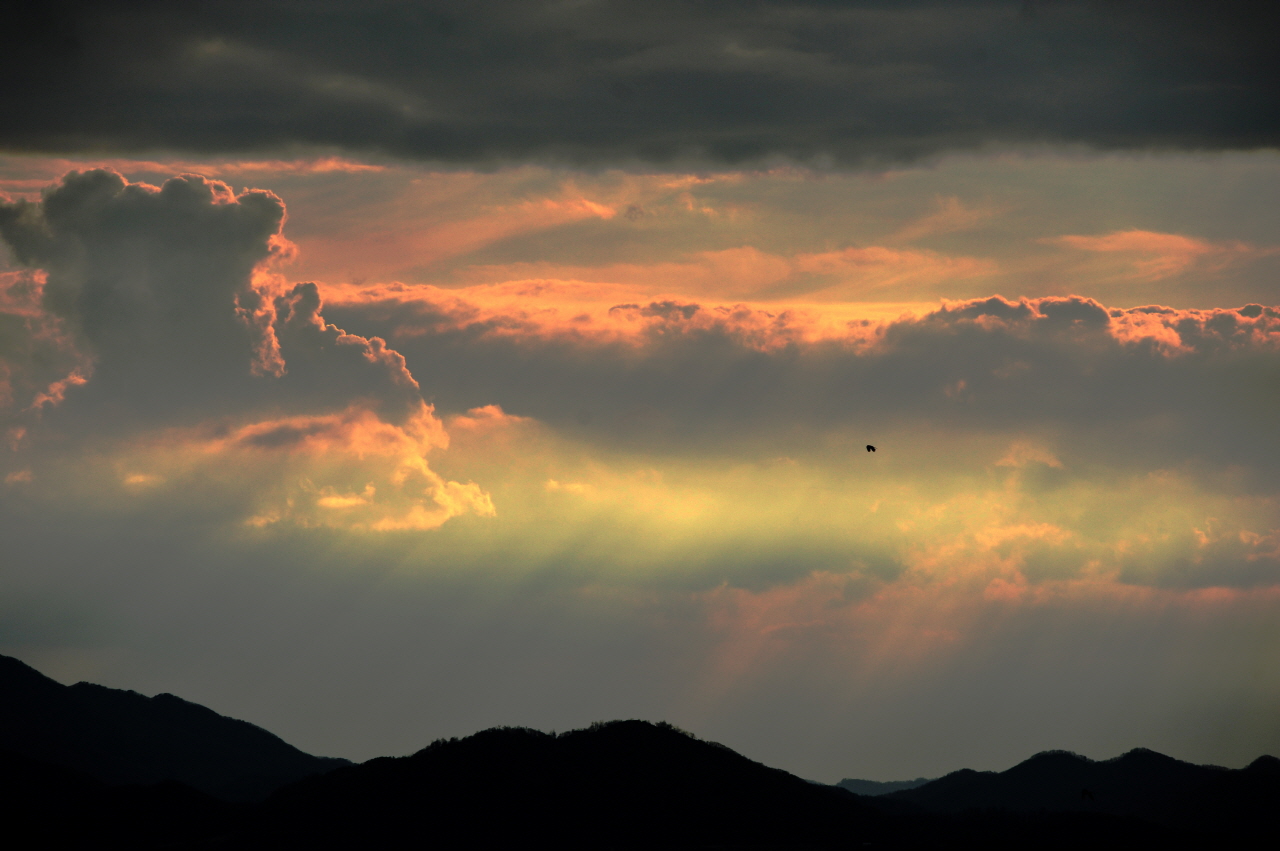 북녘땅에도 똑같이 빛은 비추고 노을은 지건만 어찌 날으는 한마리 새만 자유로이 넘나드는가?