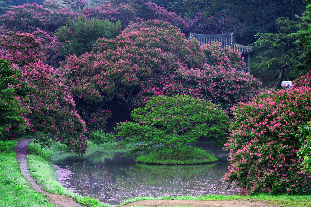 가을이 시작하기 전 명옥헌 원림은 백일홍 가득 환상적인 풍경이 펼쳐집니다.