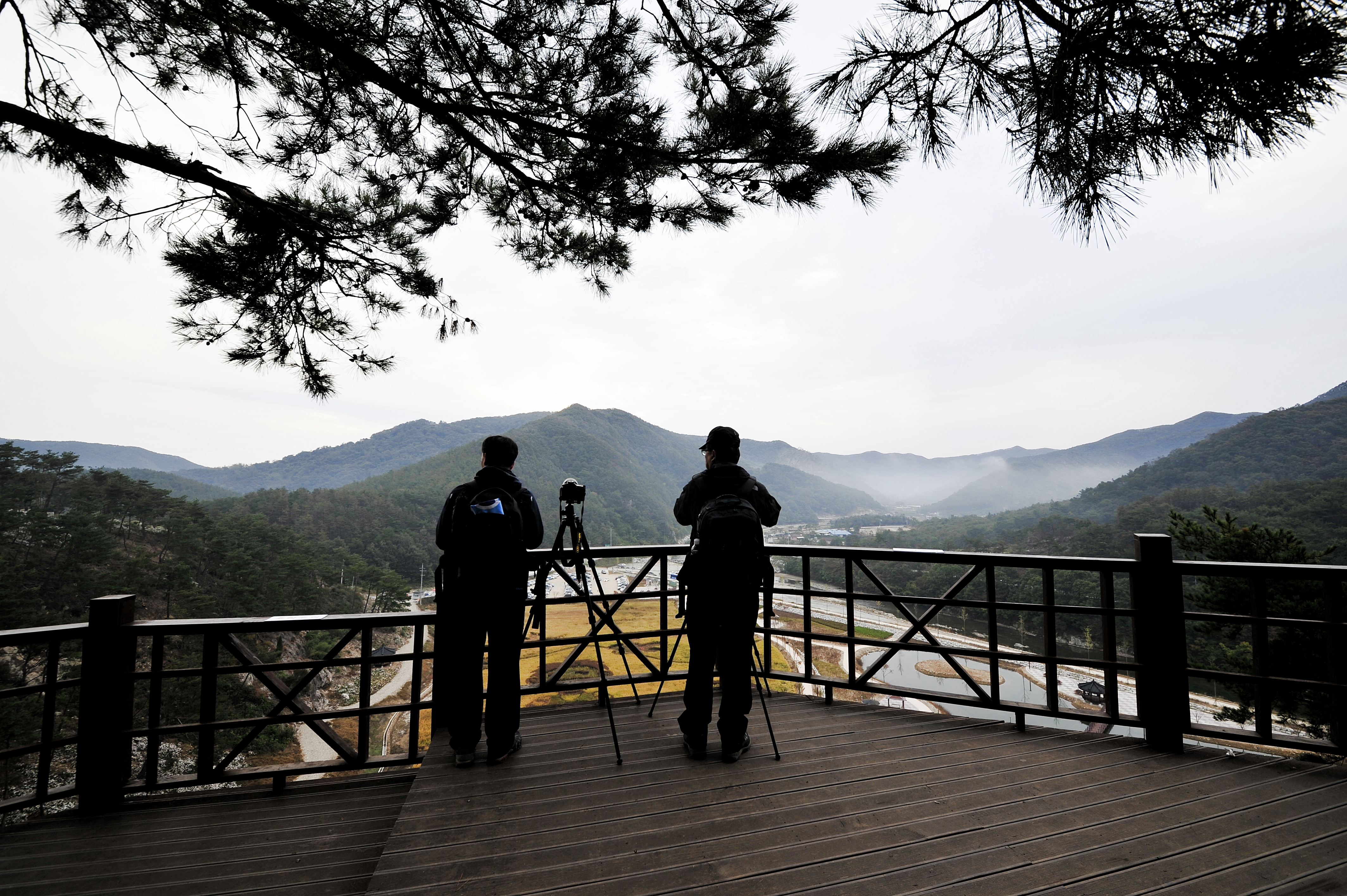 전망대에서 구름이 벗어지고 해가 나오기를 기대해 보는 두분 진사님