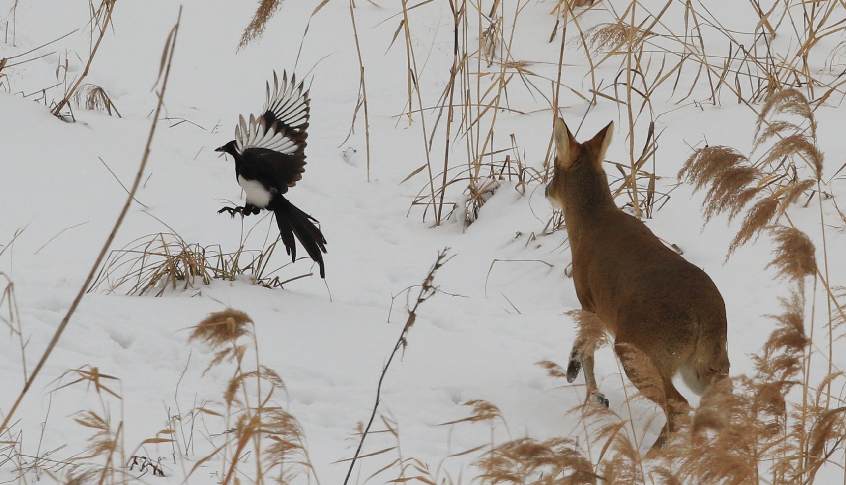 먹이 ?아다니는 고라니.