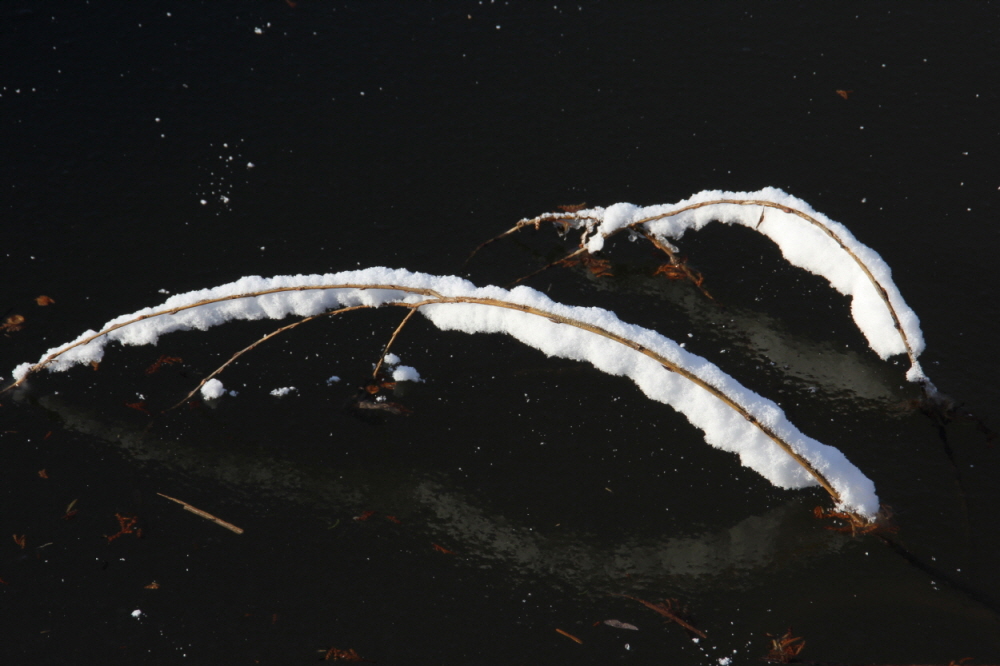 저수지 가운데에 눈이 쌓여 잡아 본 사진입니다.