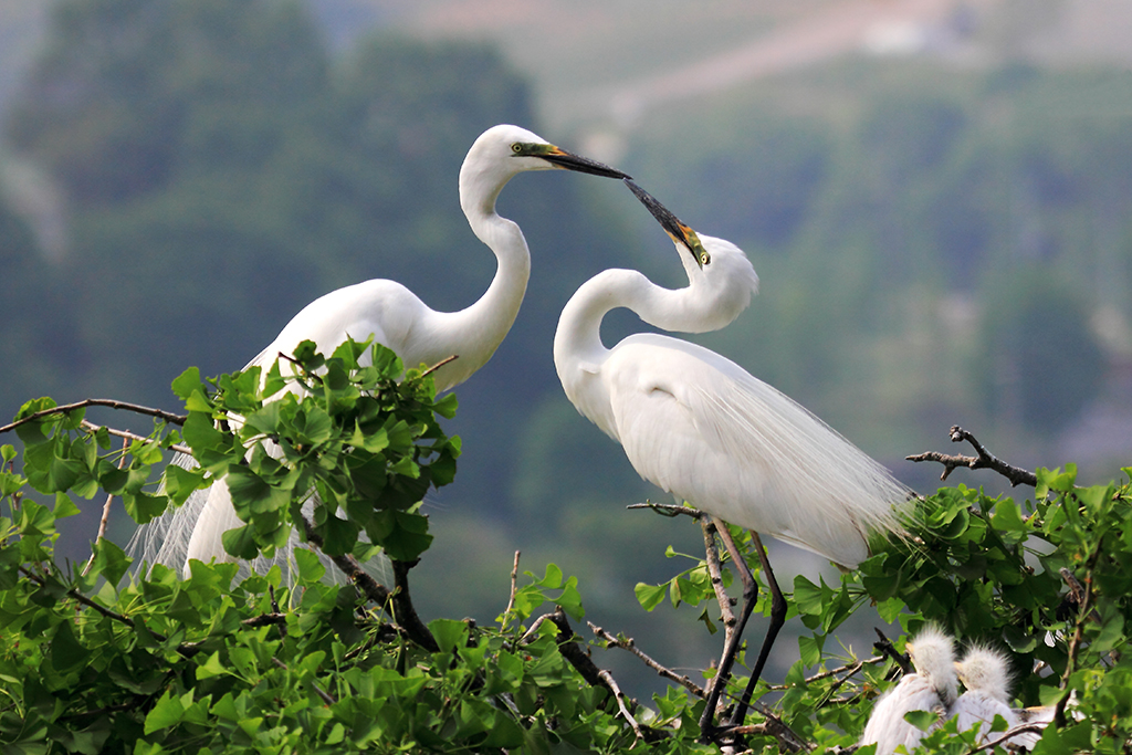 먹잇감을 구해 온 배우자를 격려하는 백로의 부부 사랑! 바라보는 새끼들 모습이...... .