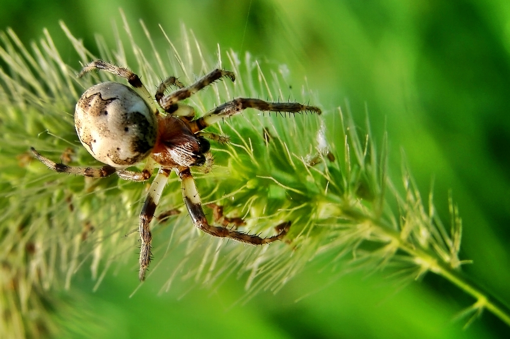 강아지풀 위에 아주작은 거미가 보인다