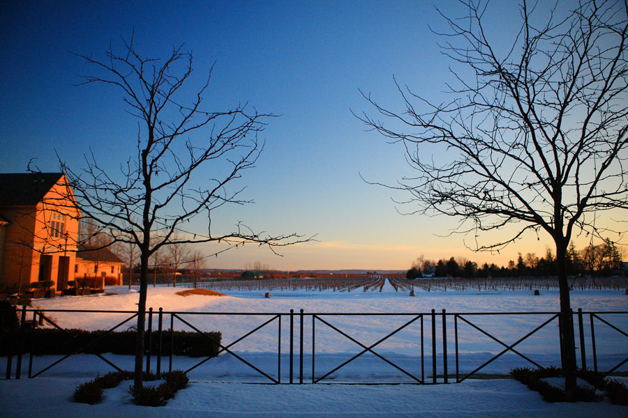 눈쌓인 포도밭에 비친 노을이   왠지 마음을 따뜻하게 합니다.