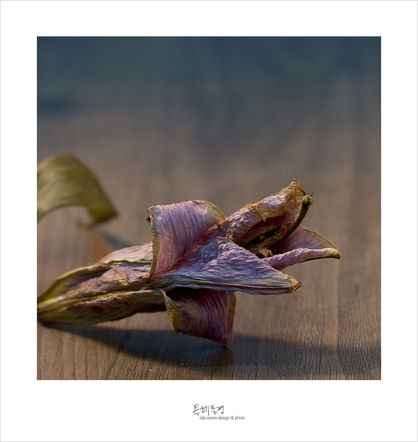 한때는 화려하게 꾸며져 누군가에게 축하를 전달하는 메신저가 되었건만 그때 뿐이더라. 횅하니 구석에 던져진채 물 한 모금 못 얻어 먹고 이리 시들어 버렸으니 참 내 신세도 한탄스럽기 그지 없네 그려. 그러나 어쩌랴... 내 한탄스러운 삶을 이리라도 의지해서 남기고 싶은 걸.... - 어느 꽃나발 속 꽃잎의 한탄 -