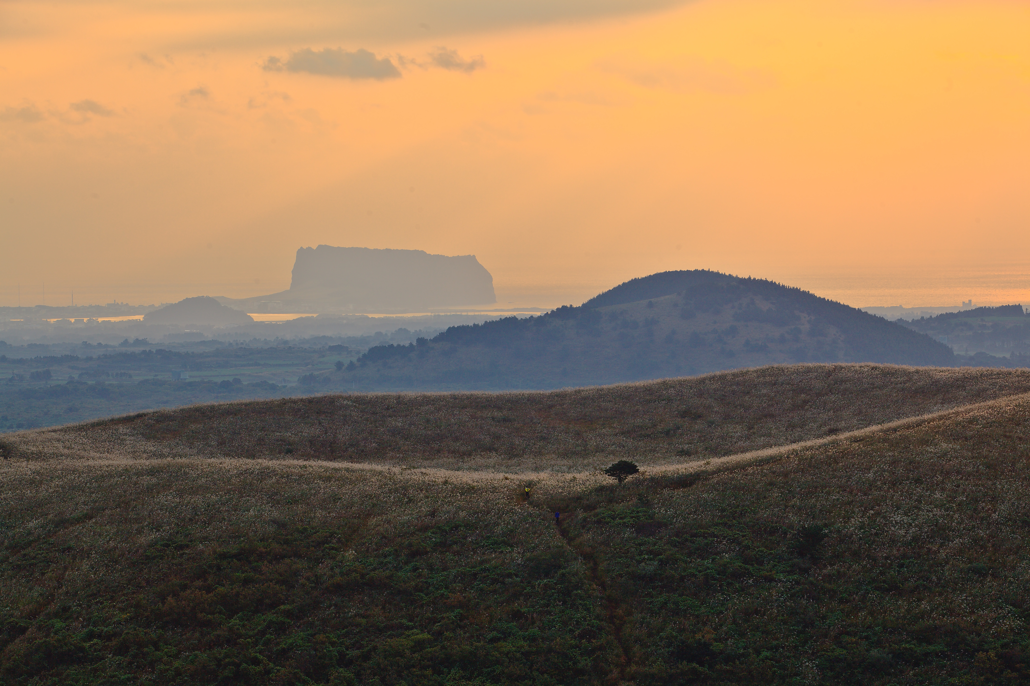 흐린날 다랑쉬 오름에서 바라본 아끈다랑쉬와 성산일출봉 입니다.