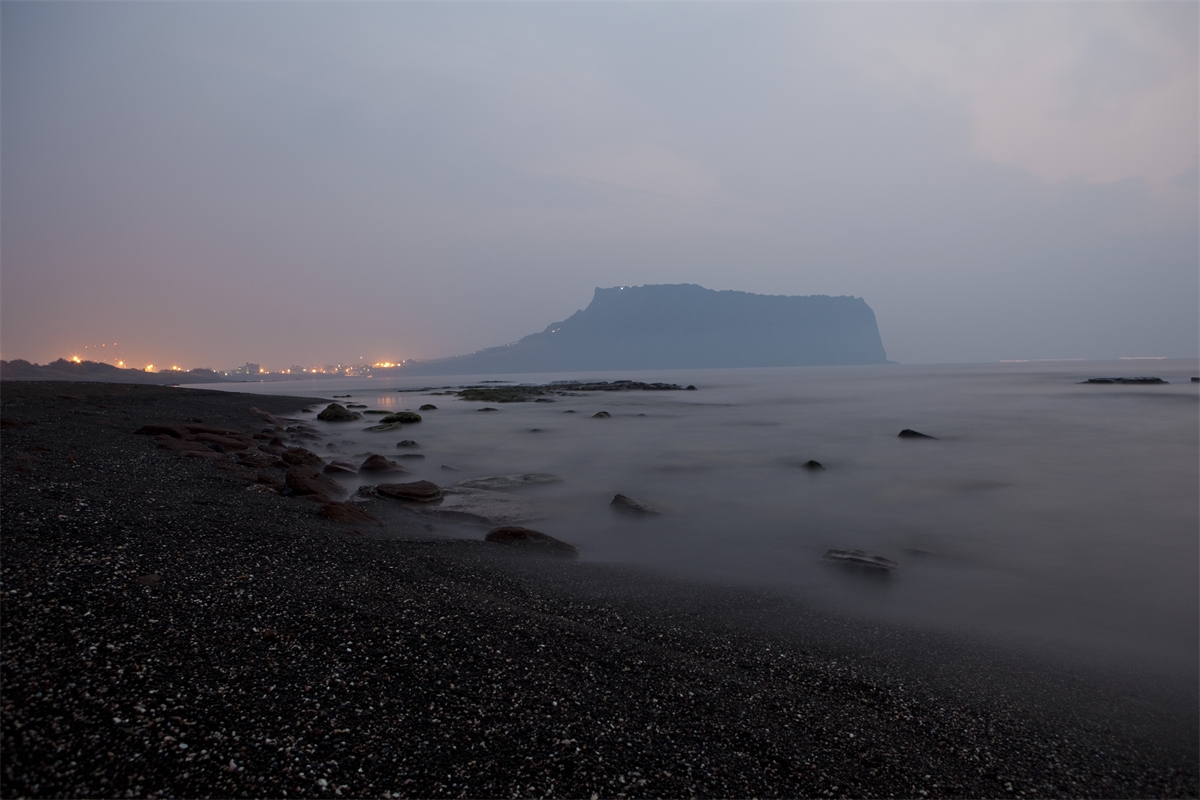 안개낀 광치기 해안에서의 일출봉