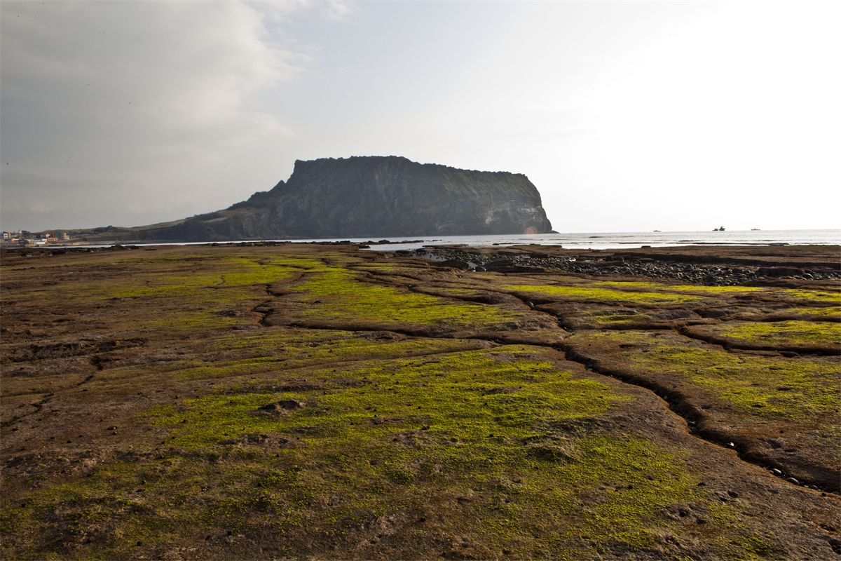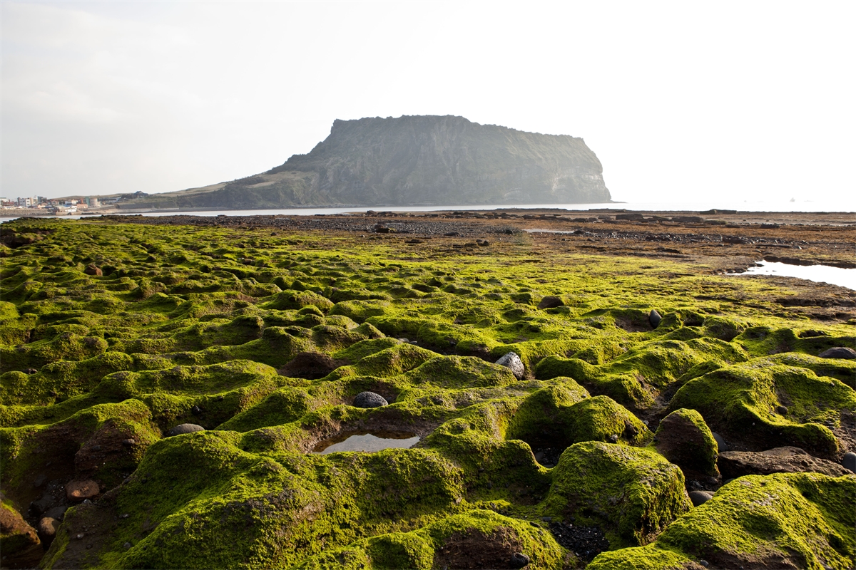 제주도 광치기해안의 일출봉과 이끼모습.