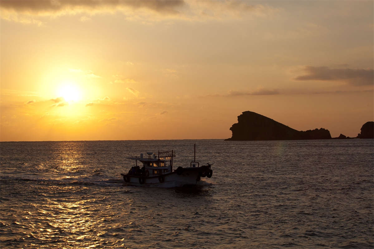 제주도 한경면 고산리 차귀도 앞바다에 귀항풍경