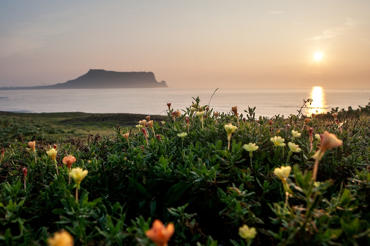 성산에는 애기달맞이꽃이 아침 해맞이를 한다.