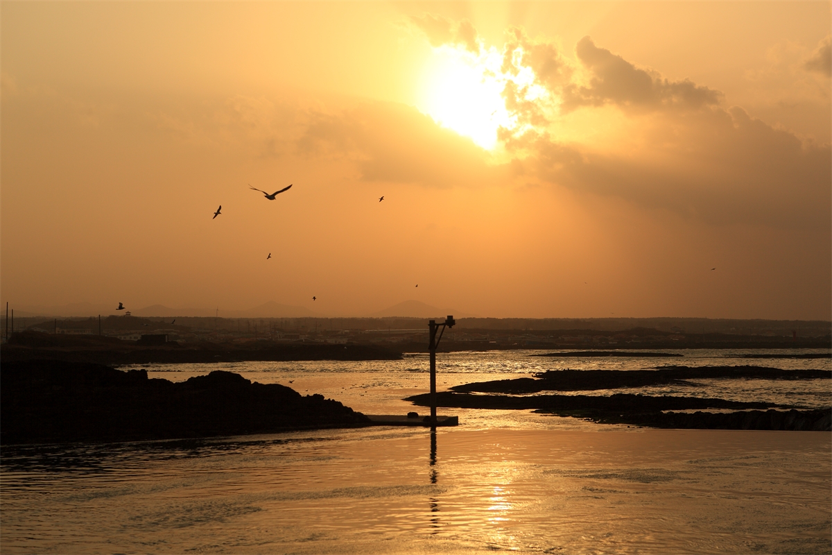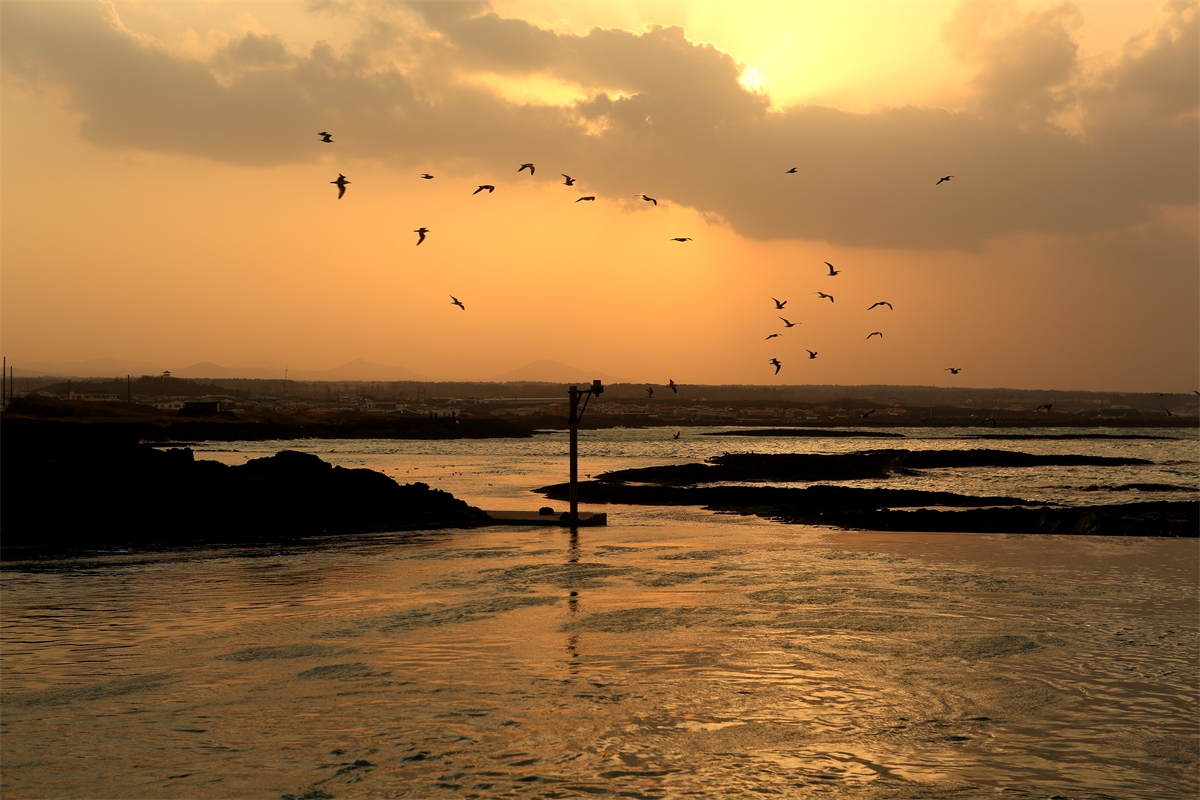 제주도 행원 바다 갈매기와 신년의 해를 담아본다.