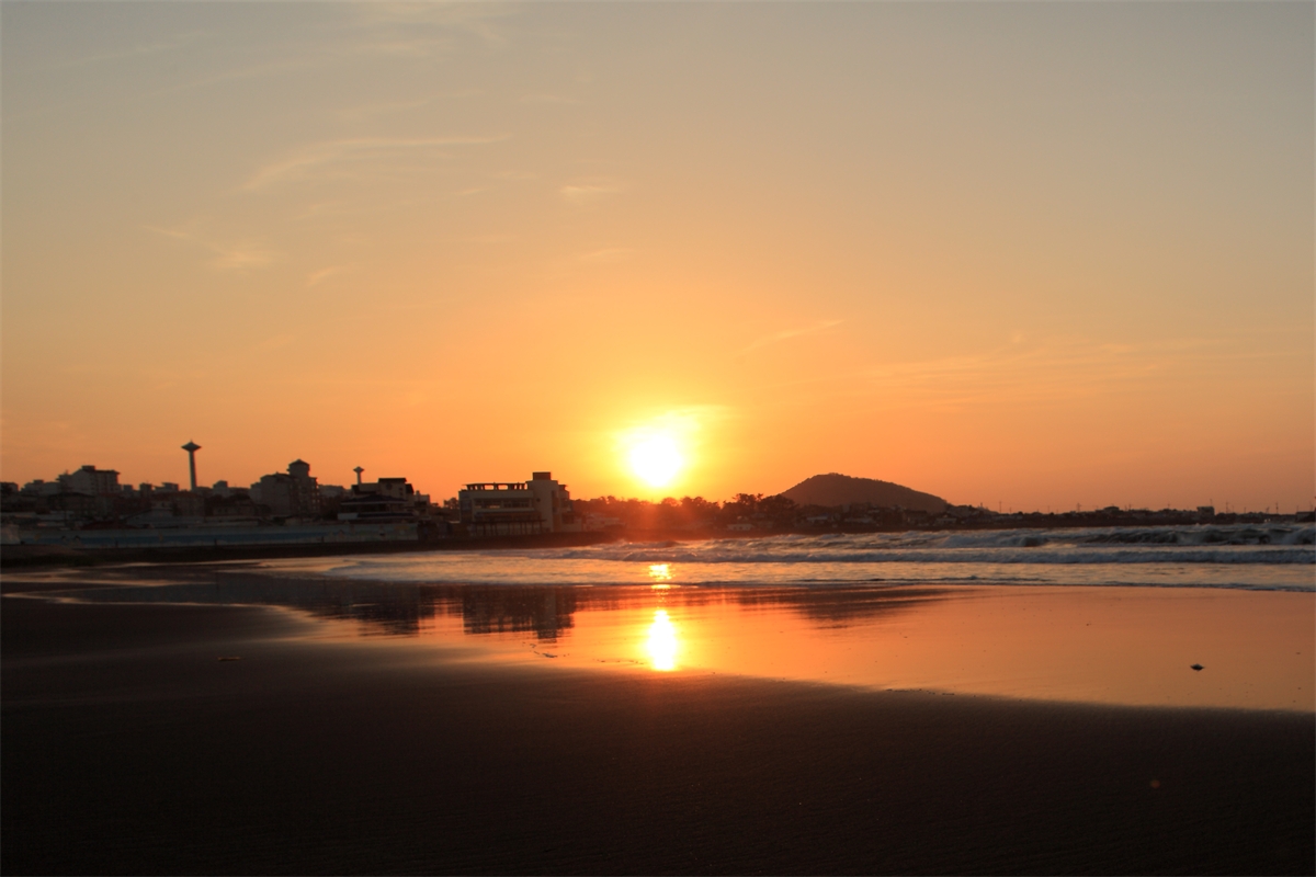 제주도 삼양 해수욕장 노을