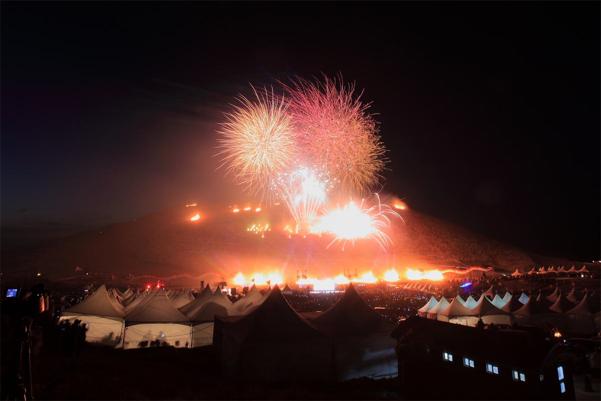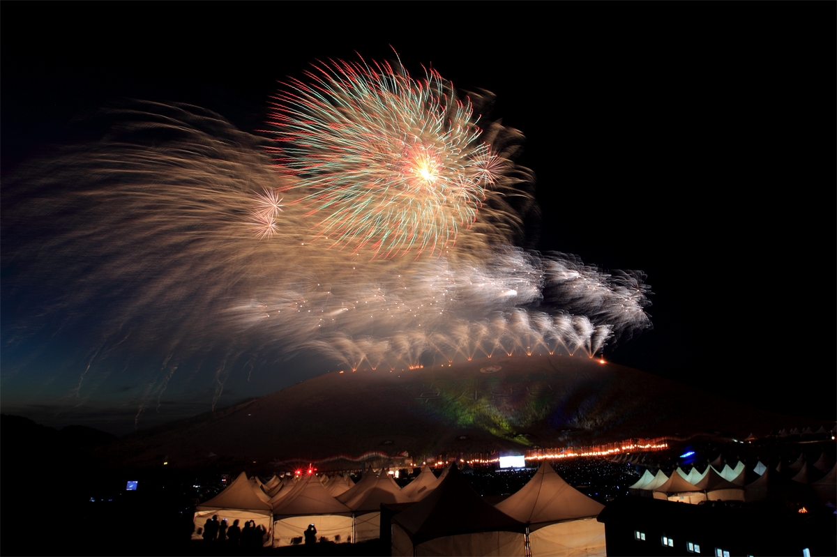 제주 들불축제에서 화려한 불꽃놀이를 담아 봅니다.