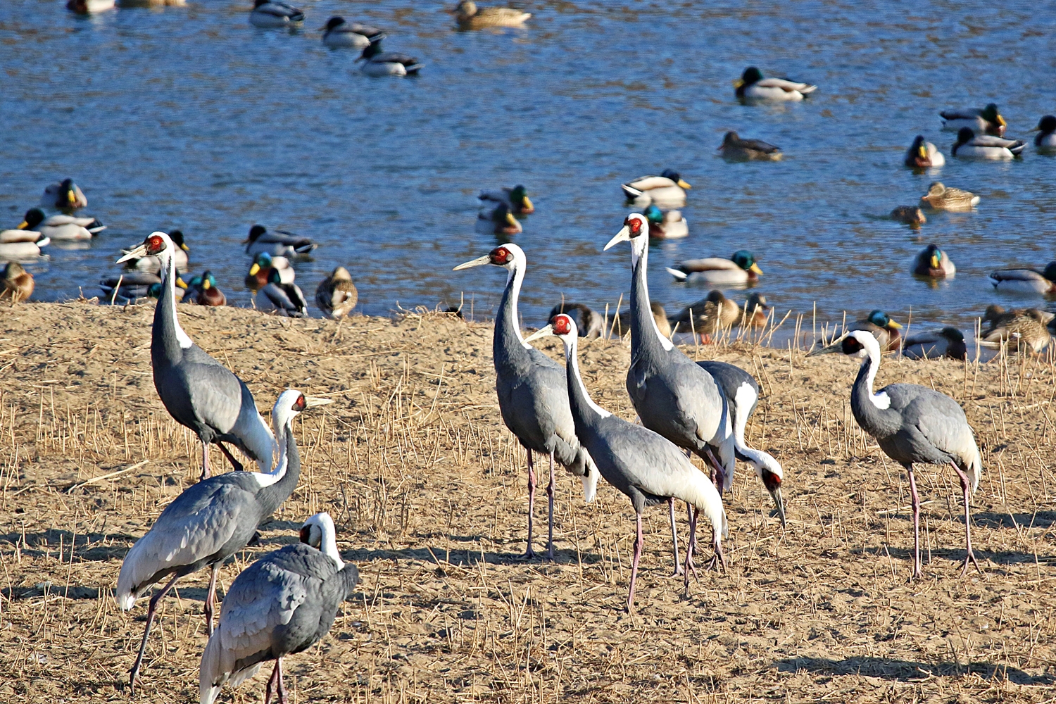 재두루미 가족들이 잠시후 이륙하기위해 날아갈 방향을 주시하고 있네요