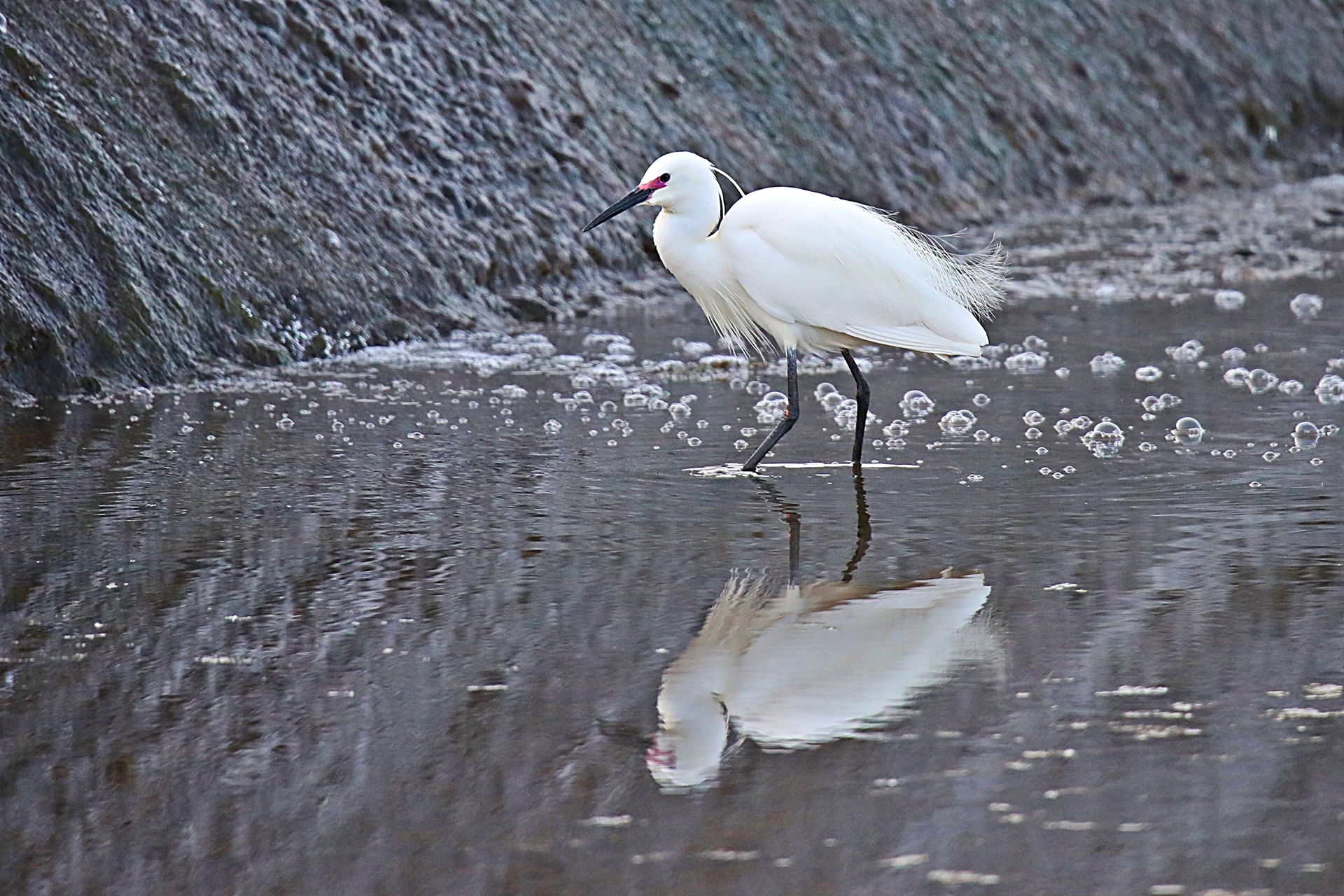 먹이활동중인 쇠백로가 반영을 보며 한 말.....